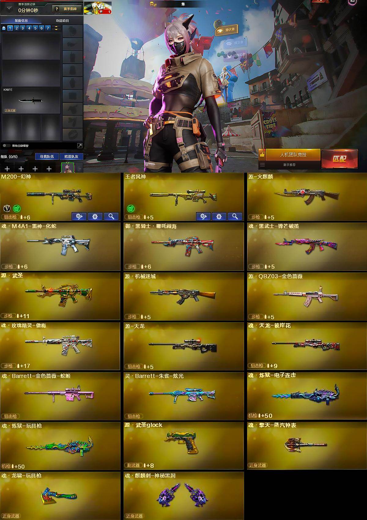 - [12623951]湖南一区-30V-8王者-2炫金 【传说角色】:传说星骇 【热门武器】:QBZ03-金色蔷薇,C.A.T,COP-白鲨,沙鹰-修罗,荣耀世冠-龙啸 【王者炫金武器】:炫金无影,炫金千变,王者青龙,王者玉锋,王者冰锋 【稀有皮肤】:火麒麟-心动糖果,炼狱-星空,毁灭-荣耀之怒,龙啸-冠军之啸 【角色】:葵,铁骑荣耀,青霞仙子 【人偶武器】:COP-白鲨,AWM-灵狐-15周年嘉年华,C.A.T,迷你深渊冰龙,迷你超能女侍,迷你裂空之翼,迷你牛牛 【暴走生化】:超级对讲机 【挑战大师】:试炼破坏者III,冰龙粉碎者-白马银枪*2 【英雄级武器】:擎天-竞技荣光,烟雾弹-竞技荣光,闪光弹-竞技荣光*3,麒麟刺-堕天神,龙啸-堕天神*2,荣耀世冠-龙啸,QBZ03-金色蔷薇,无影-神兵利器,AK47-火麒麟,AK12-天启,Barrett-毁灭,Barrett-朱雀,黑武士-锦绣游龙,M4A1-赤狱骑士,沙鹰-修罗,麒麟刺,擎天,龙啸 【特殊枪械】: