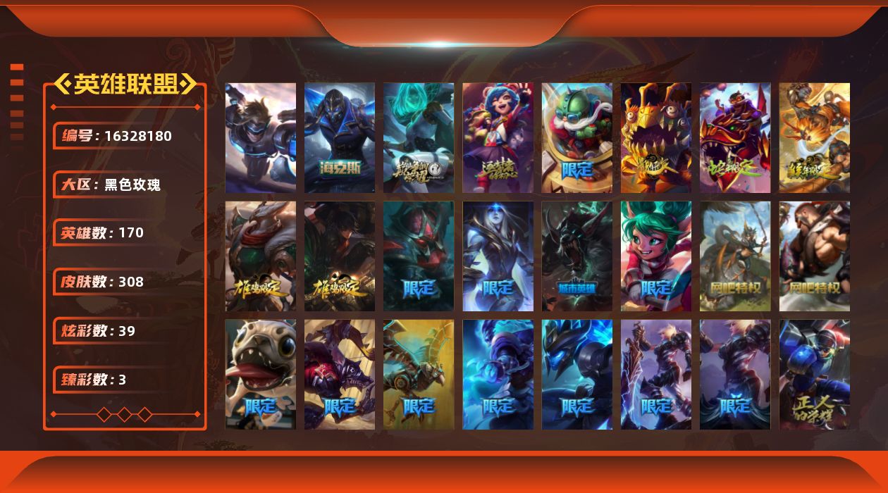 [16328180]可直接换绑!白银段位-170英雄-308皮肤-39炫彩-1终极-4神话-42限定-23传说-81史诗