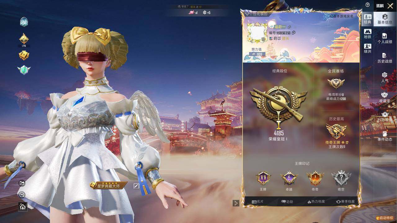 - PX_2103310-实名: 可修改 贵族等级: V6 英雄数: 119 皮肤数: 164 荣耀水晶: 幻阙歌 珍品传说: 大耳狗之梦 传说皮: 幻光神枪,续相思 限定皮: 梁祝,时之彼端,鸣野蒿,逐霄战戟,愿照·众生和,愿照·福禄聚