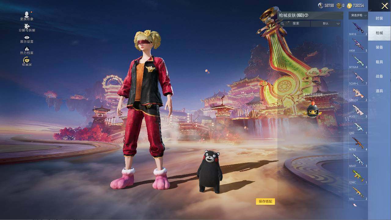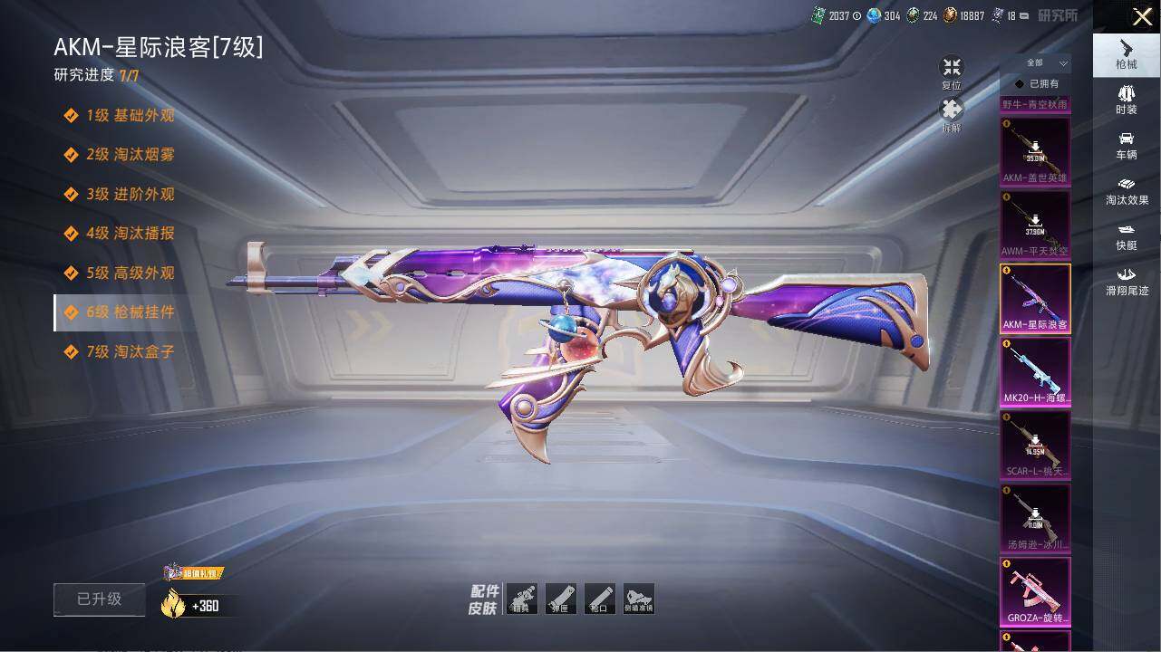 AKM-星际浪客,SCAR-L-梦幻火箭,UMP45-启明星,Kar98K-巳巳如意,MG3-洛神天依