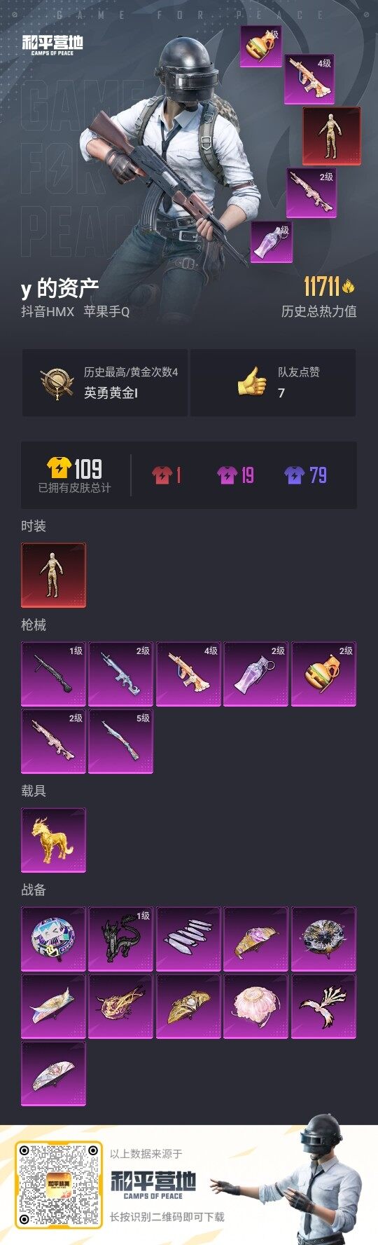 - [16678073]【特价出售/店主推荐】 苹果 微信-1神装-1粉装-4特效枪-1载具-5粉色飞行器-26872热力值-8王牌印记-50套装-94枪皮 【红色神装等级】:沙丘之主-图卡盟(三级) 【红色角色神装】:沙丘之主-图卡盟 【粉色套装】:粉装-幻彩电音 【粉色枪皮等级】:M416-墨龙九天(三级),AKS-74U-星穹咏叹调(四级),Kar98K-巳巳如意(五级),DP-28-豹影疾电(五级) 【粉色载具】:晶梦灵驹 【粉色枪皮】:M416-墨龙九天,AKS-74U-星穹咏叹调,Kar98K-巳巳如意,DP-28-豹影疾电 【粉色飞行器】:酣梦熊熊飞行器,沙丘之主天马,镜域双华-灵镜之阶,龙翔九天飞行器 【粉色降落伞】:镜域双华降落伞,墨龙九天降落伞,千金淑猫降落伞,星穹咏叹调降落伞 【稀有套装】:玩偶服-酷勇熊大,套装-巳巳如意,套装-糖糖葫芦,套装-青团波波,角色-都市丽猫,角色-摩登魅猫,套装-燕燕于飞,套装-鱼渊荷华,玩偶服-小狗蛇点点,套装-紫幽梦,套装-蓝冰羽,套装-星影赞美诗,套装-星渊小夜曲,套装-霓虹热舞,套装-云朵鹅,套装-雪绒豹,角色-月烬之祷 【稀有枪皮】:AKM-玄冥寒域,M16A4-千金淑猫,SCAR-L-夜灯,SCAR-L-小狗蛇点点,GROZA-晶梦幻蝶,M762-天降萌叽,M762-彩虹符号,M762-云朵鹅,Mk47-妙红点点,G36C-镜域双华,G36C-星穹咏叹调,Famas-镜域双华,Famas-墨龙九天,UZI-娇憨猪猪,野牛-沙丘之主,P90-巳巳如意,M24-影袭,SKS-炫彩节奏,Win94-晶梦幻蝶,AMR-墨龙九天,SVD-云朵鹅,S686-巳巳如意,S686-千金淑猫,S12K-玩趣呆呆,S12K-夜灯,DBS-月影灵韵,SPAS-12-云朵鹅,M249-彩虹符号,M249-沙丘之主,DP-28-彩虹符号,MG3-妙红点点,PKM-小狗蛇点点,P1911-小狗蛇点点,短管霰弹-星穹咏叹调,蝎式手枪-千金淑猫,沙漠之鹰-云朵鹅,大砍刀-云朵鹅,大砍刀-鬼刀,撬棍-沙丘之主权杖,破片手榴弹-巳巳如意 【其他套装】:套装-冷焰舞者,套装-幻世战舞者,套装-柠萌假日,套装-湖蓝色名流,套装-灼焰舞者,套装-猛禽,套装-破蛋小黄鸡,套装-竞技名士,套装-缤纷果语,套装-长空猛禽,套装-魅力单车 【营地ID】:978872600