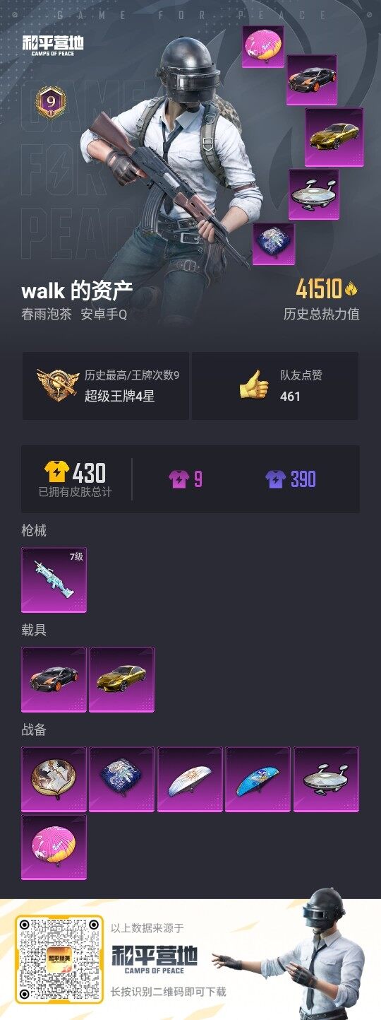 - [16327799]无敌战神框!极品小素材身法号!极品双字id造玲!【特价出售/店主推荐】安卓 手Q-无敌战神框-9粉装-10特效枪-2载具-3粉色飞行器-66198热力值-11王牌印记-143套装-195枪皮【热门品类】:粉装-梦幻火箭,套装-浪漫天命,套装-都市猎人,套装-派对舞王,套装-小丑鱼,套装-龟仙人,套装-暗影哥特,角色-Mark.06【粉色套装】:粉装-蝶舞迷情,粉装-梦幻火箭,粉装-飓风飞鹰,粉装-骨龙祭渊,粉装-彩虹甜喵,角色-蔷薇星,角色-圣堂之誓,角色-烟云彩露,角色-冷漠罗丽【粉色枪皮等级】:M416-女娲灵识(三级),GROZA-镜光银凌(五级),AUG-暖羊咩咩(五级),M762-青锋波束(五级),P90-冷漠罗丽(七级),Kar98K-巳巳如意(五级),Mk14-甜梦熊击(五级),DP-28-豹影疾电(五级),PKM-守护天翼(七级),MG-36-沧焰双生(五级)【粉色载具】:玛莎拉蒂Ghibli(粉),海龙奔腾【粉色枪皮】:M416-女娲灵识,GROZA-镜光银凌,AUG-暖羊咩咩,M762-青锋波束,P90-冷漠罗丽,Kar98K-巳巳如意,Mk14-甜梦熊击,DP-28-豹影疾电,PKM-守护天翼,MG-36-沧焰双生【粉色飞行器】:翩跹演武飞行器,宁雨蝶飞行器