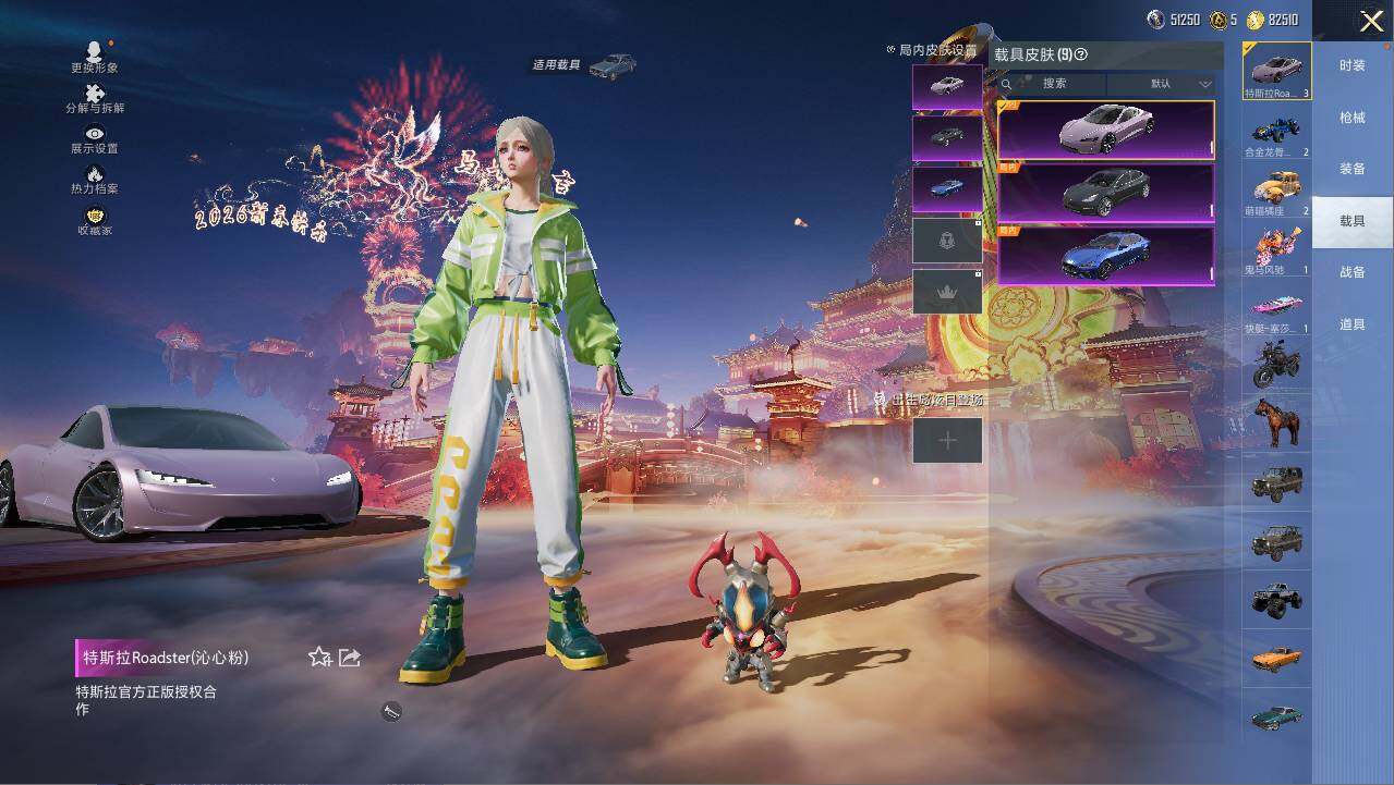 特斯拉Model_3(冷光银),特斯拉Model_X(珍珠白),特斯拉Roadster(沁心粉),玛莎拉蒂Ghibli(蓝),合金龙骨(蓝),灵鼠银迹,萌喵橘座,鬼马风驰,空客H135-蔚蓝之翼,快艇-塞莎KL27(霓虹粉)