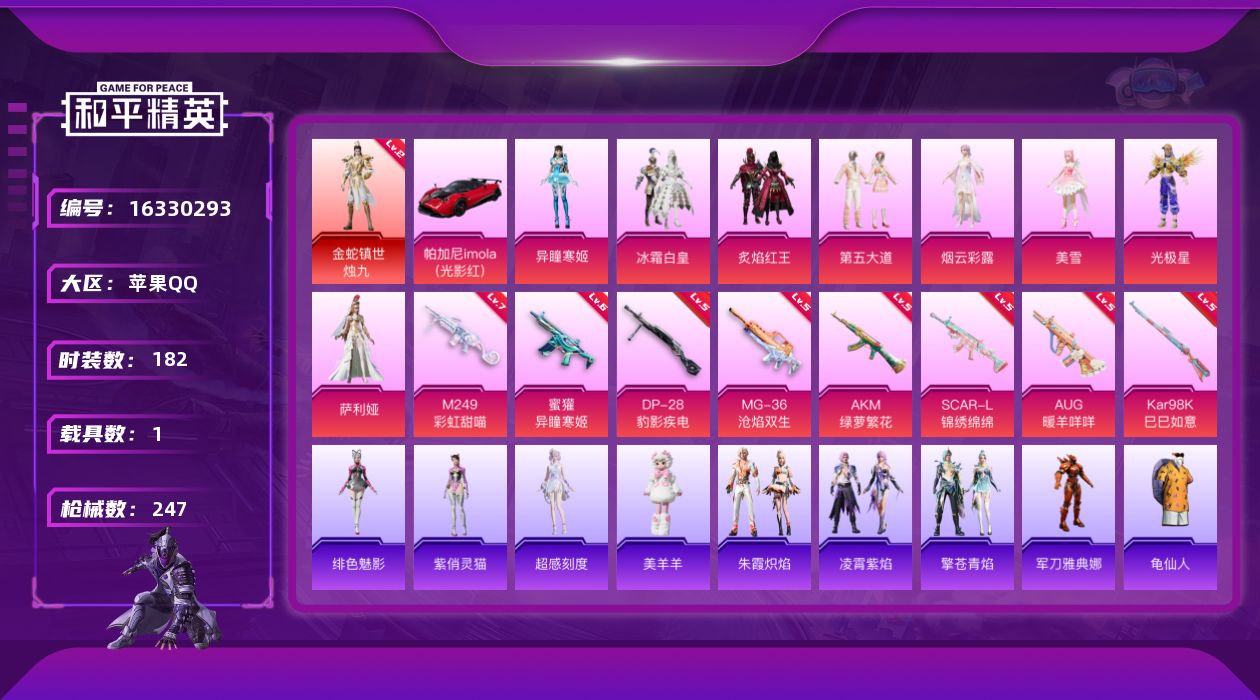 [16330293]【店主推荐捡漏号!可直接换绑】地铁满天赋 苹果 手Q-1神装-8粉装-8特效枪-1载具-3粉色飞行器-80680热力值-16王牌印记-182套装-247枪皮