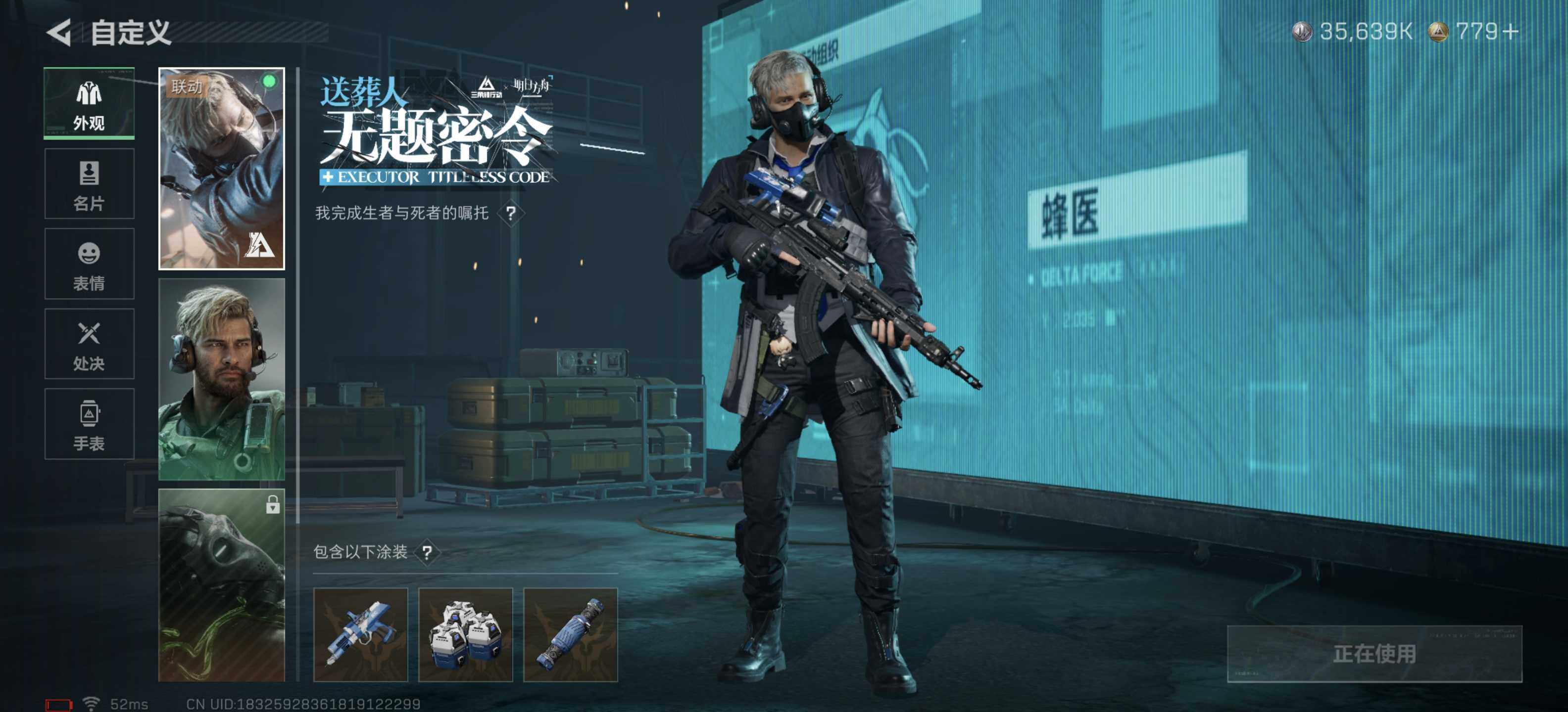 【干员外观】:蛊-能天使午夜邮差,蜂医-送葬人·无题密令,无名-夜鹰,深蓝-不破誓约,红狼-电锯惊魂,露娜-金牌射手