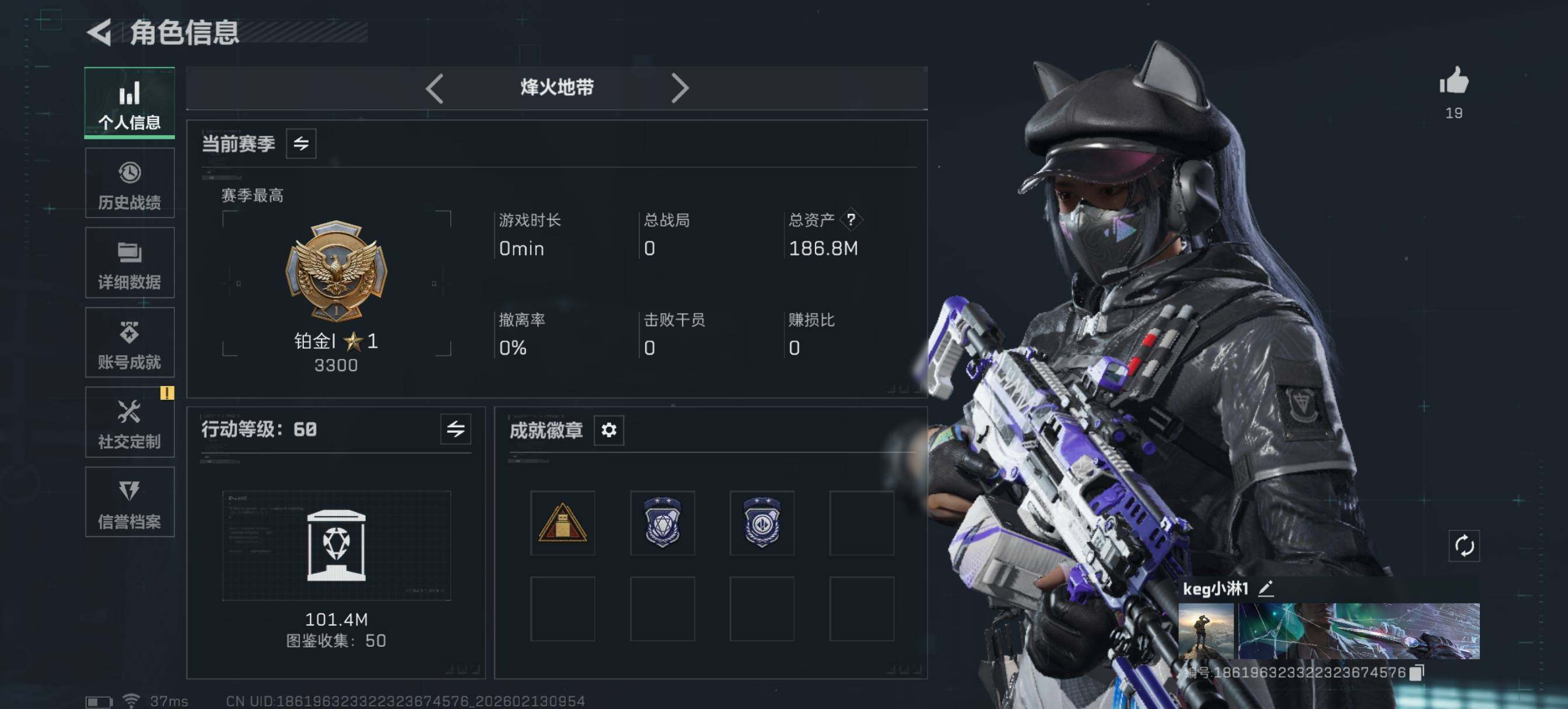 [16754281]【特价出售/店主推荐】186m总资产-3068k哈伏币-60烽火等级-铂金-41战场等级-上等兵