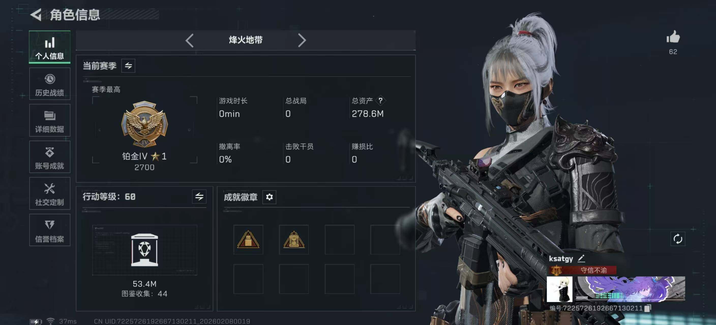[16580158]【特价出售/店主推荐】278m总资产-8733k哈伏币-60烽火等级-铂金-50战场等级-军士长
