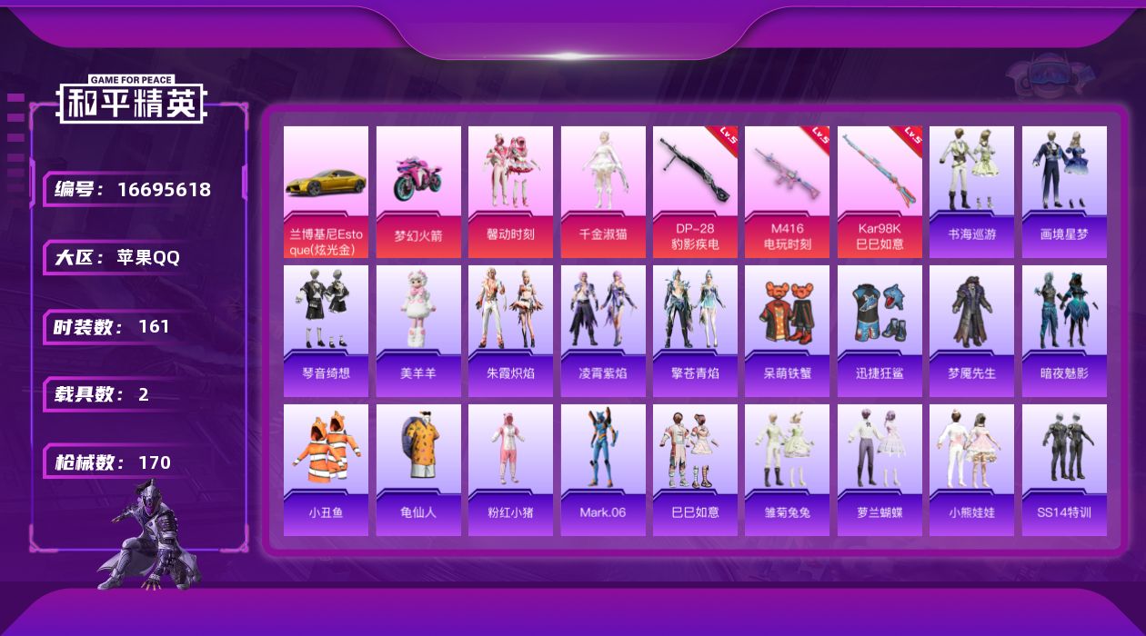 [16695618]【特价出售/店主推荐】苹果 手Q-2粉装-3特效枪-2载具-2粉色飞行器-58787热力值-13王牌印记-161套装-170枪皮