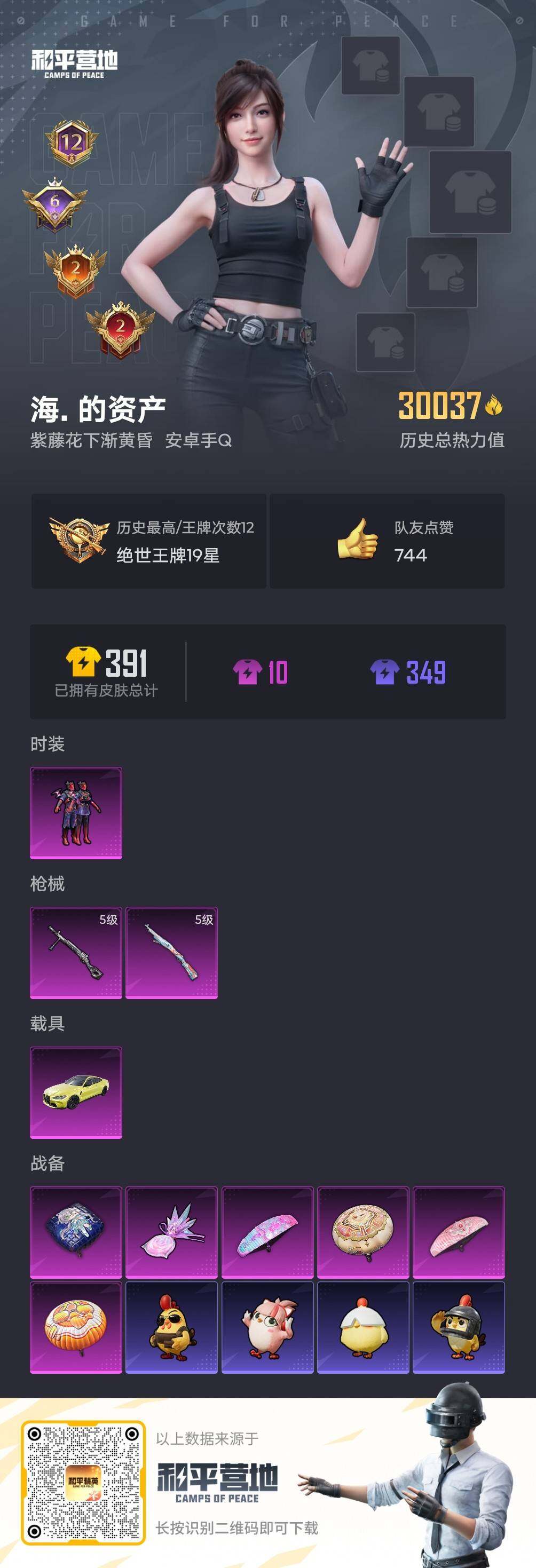 - PX_2093675- 苹果微信-6王牌印记-0粉装-0特效枪-0载具-9331热力值-57套装-40枪皮-0卓越印记-0传奇印记 【1热门】,火箭少女101, 【2稀有紫装】,浪漫天命,雪山精英, 【57稀有时装】,火箭少女101,SS33特训,浪漫天命,雪山精英,光子十周年,S5赛事,S6赛事,蓝色运动,5.56爱好者,白色伏地魔,SS9特训,酒红色名流,红剪之缘,酷萌兔限定,骑行爱好者,S