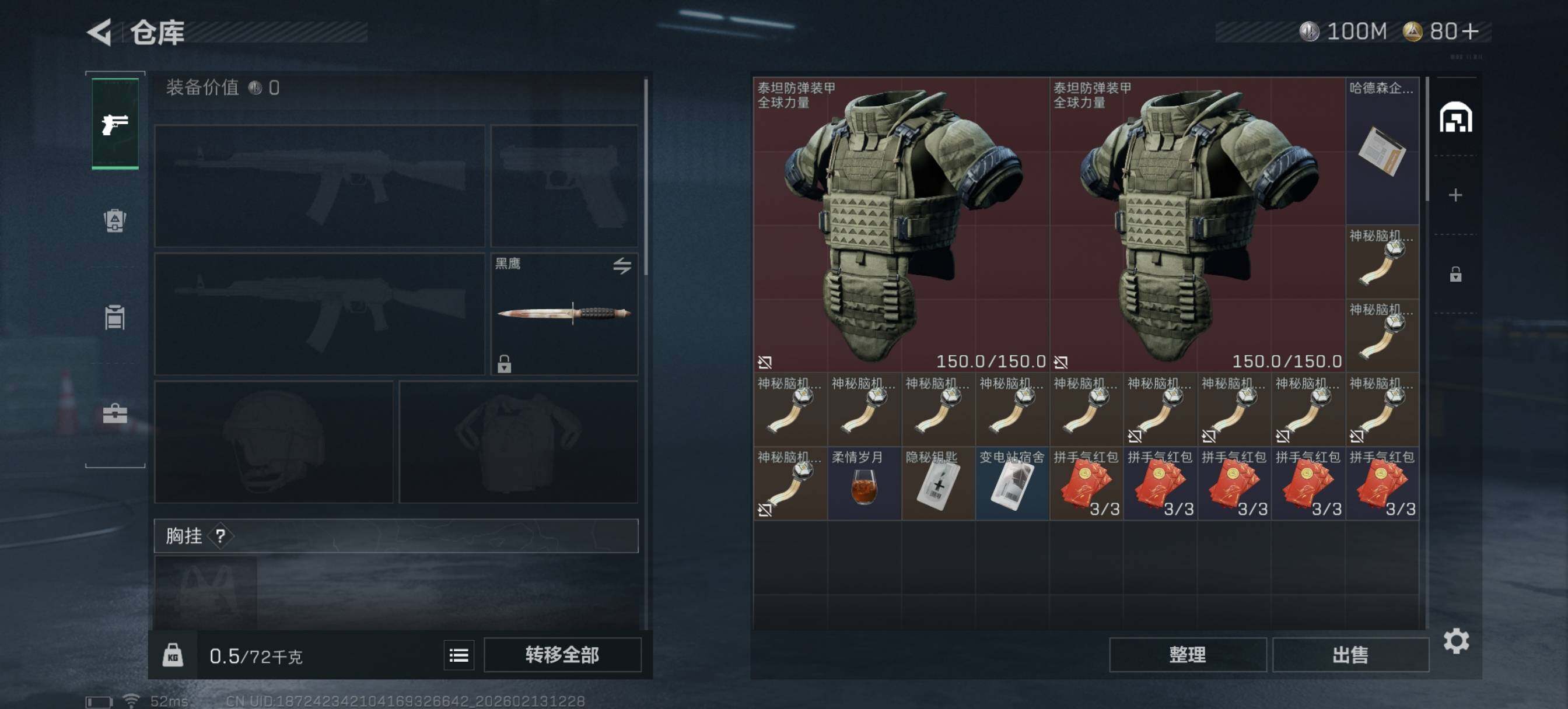 【挂饰】:挂饰-崩岩重炮*2,挂饰-暗行哨兵,挂饰-紧急撤离*20,挂饰-麻将