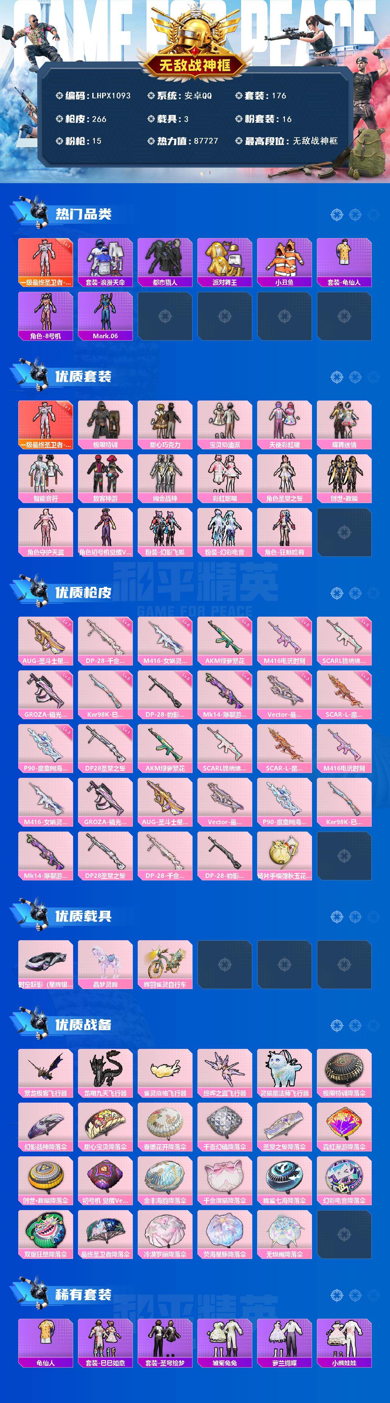[16765227]【店主推荐捡漏号!可直接换绑】安卓 手Q-无敌战神框-1神装-16粉装-15特效枪-3载具-6粉色飞行器-87727热力值-15王牌印记-176套装-266枪皮