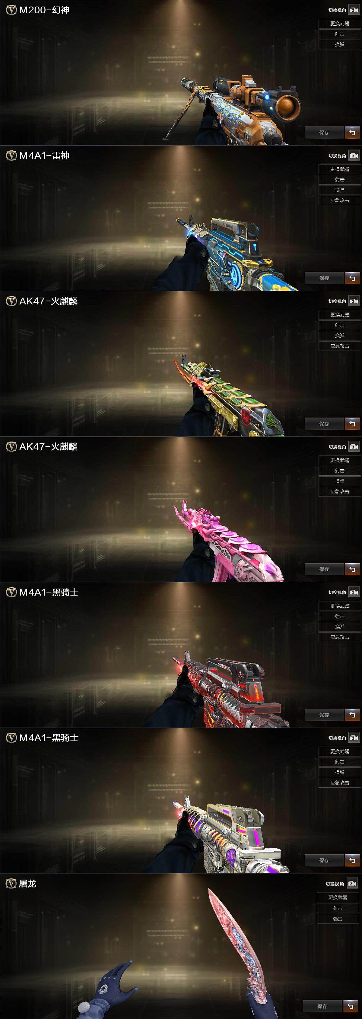 【皮肤】:M200-幻神-黄忠皮肤,M4A1-战神赵云,火麒麟-战神关羽,火麒麟-心动糖果,黑骑士-暗月,黑骑士-战神马超,屠龙-春桃 皮肤