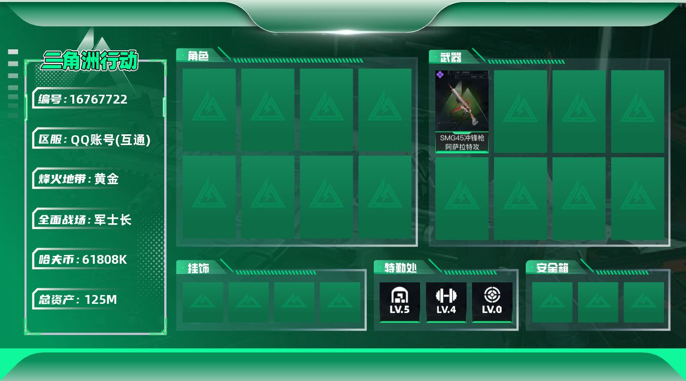 [16767722]【店主推荐捡漏号!可直接换绑】125m总资产-61808k哈伏币-44烽火等级-黄金-23战场等级-军士长