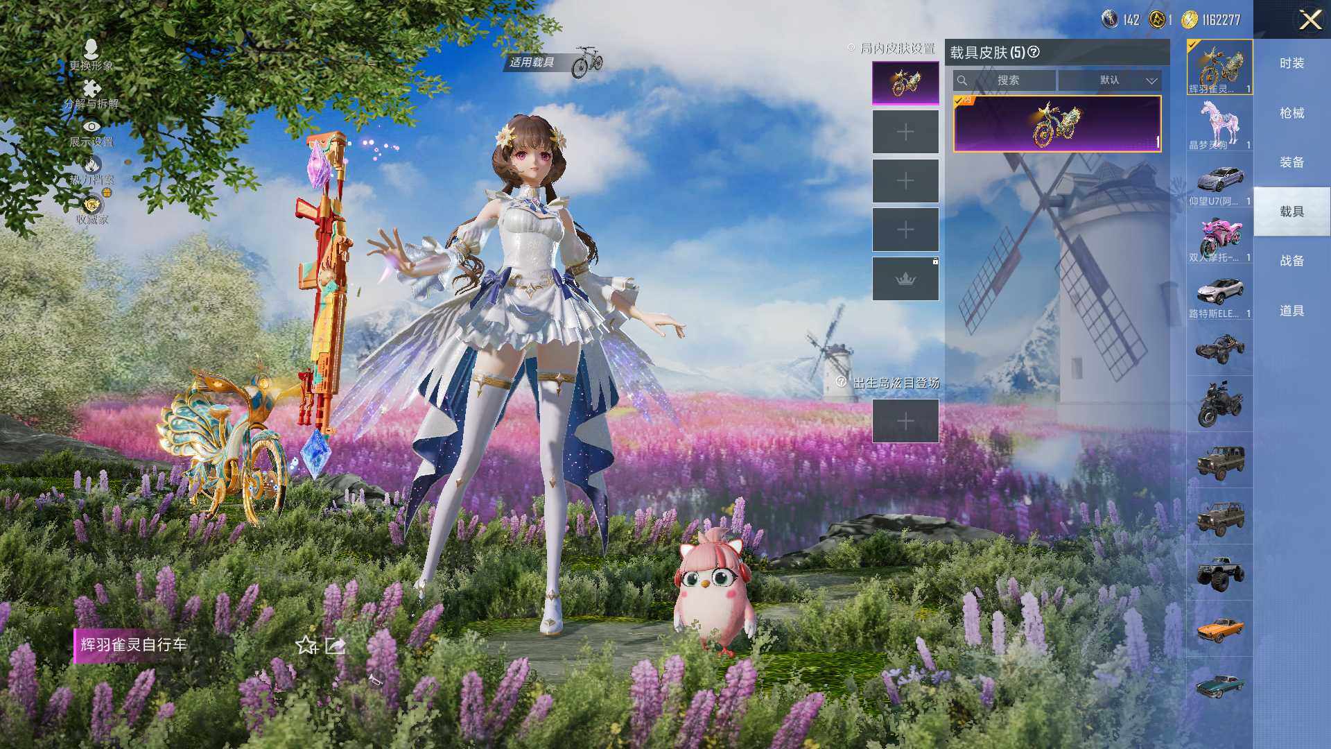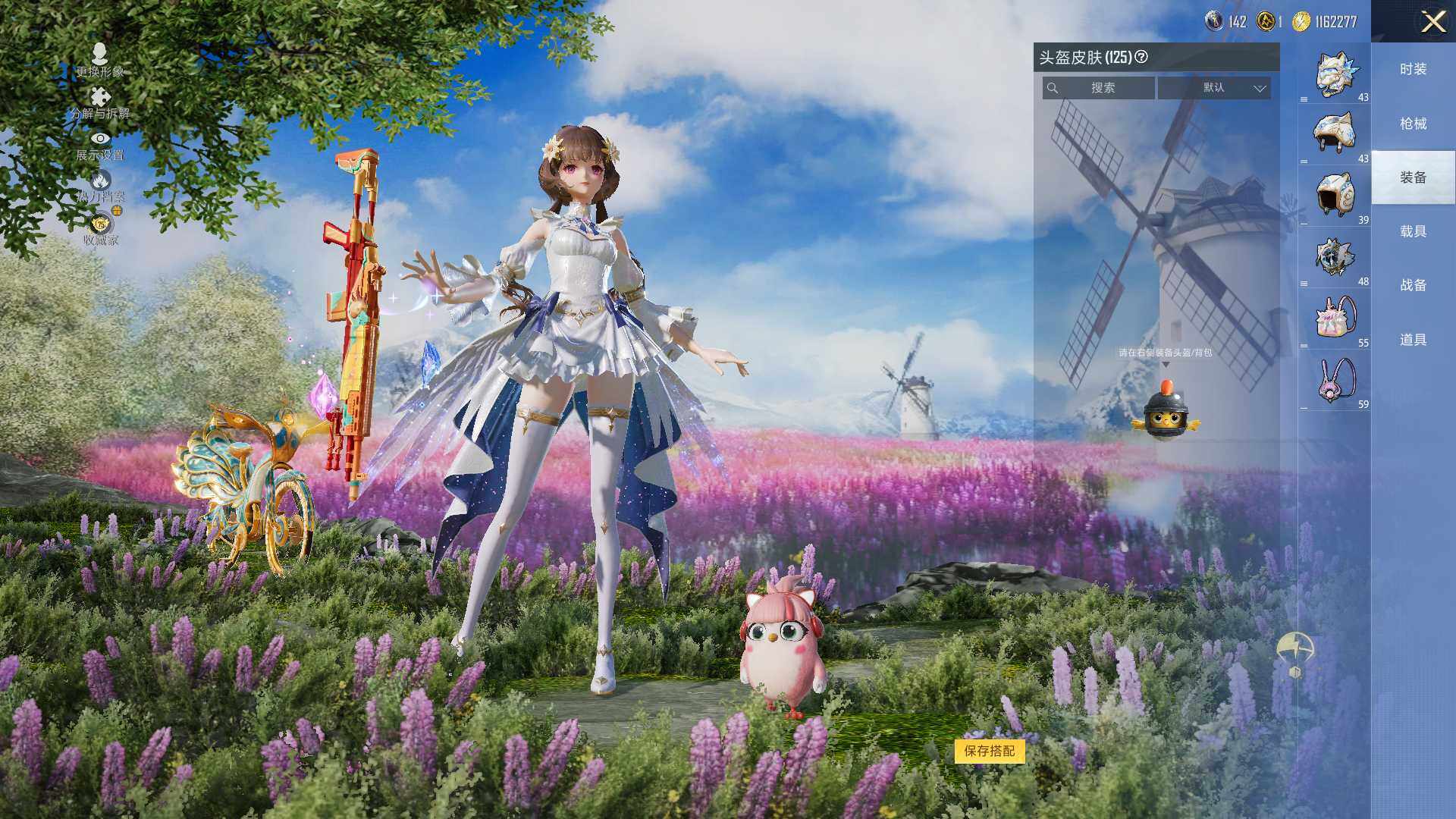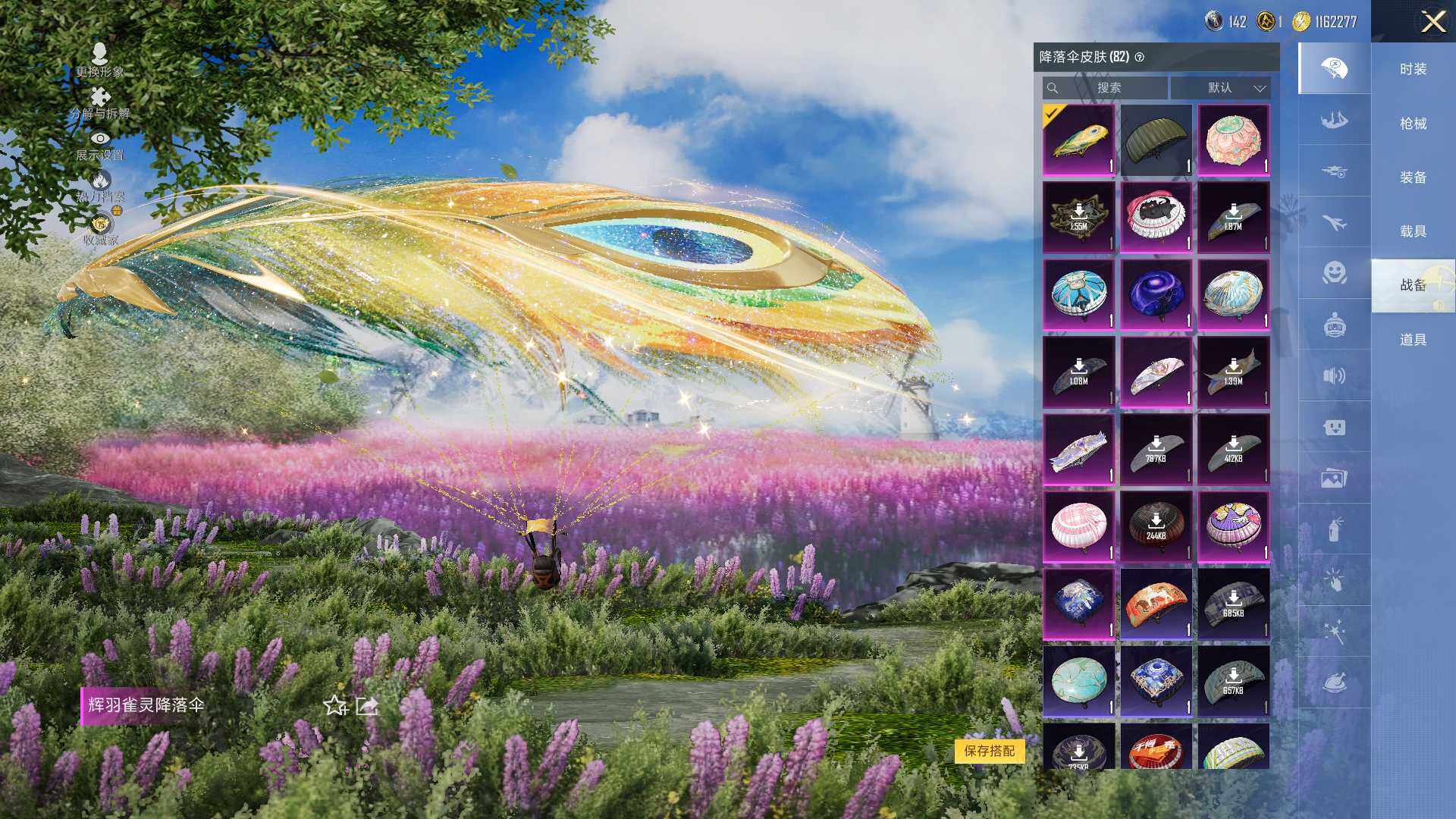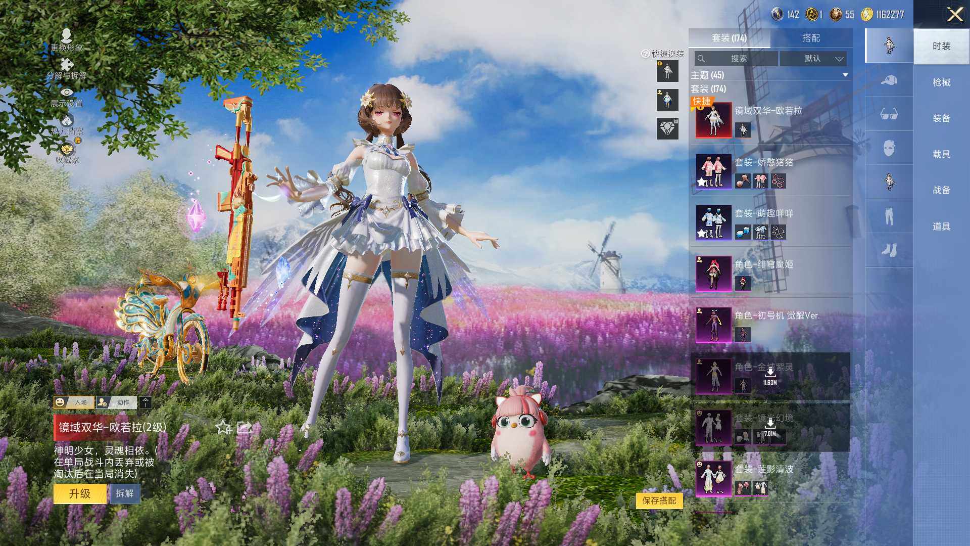 AKM-星际浪客,SCAR-L-梦幻火箭,GROZA-旋转彩虹,AUG-暖羊咩咩,UMP45-宇宙意志,Kar98K-巳巳如意,M24-镜域双华,MG3-洛神天依