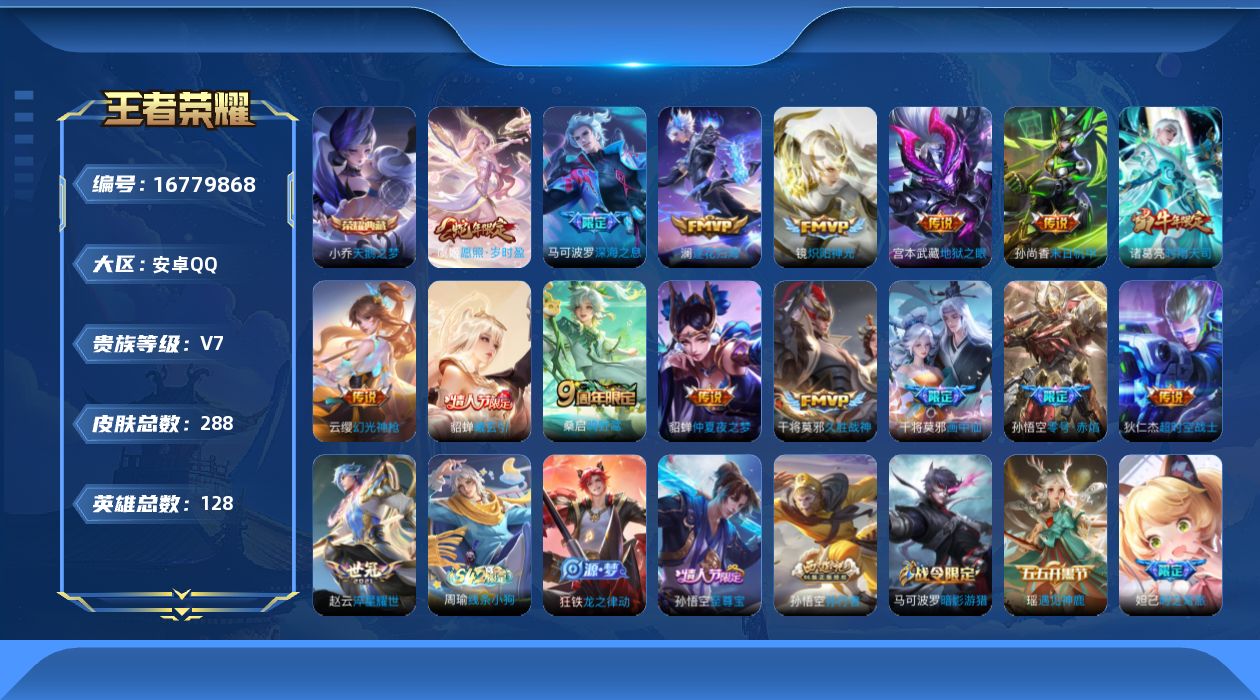 [16779868]安卓Q-288皮肤-1典藏皮肤-16传说-78史诗