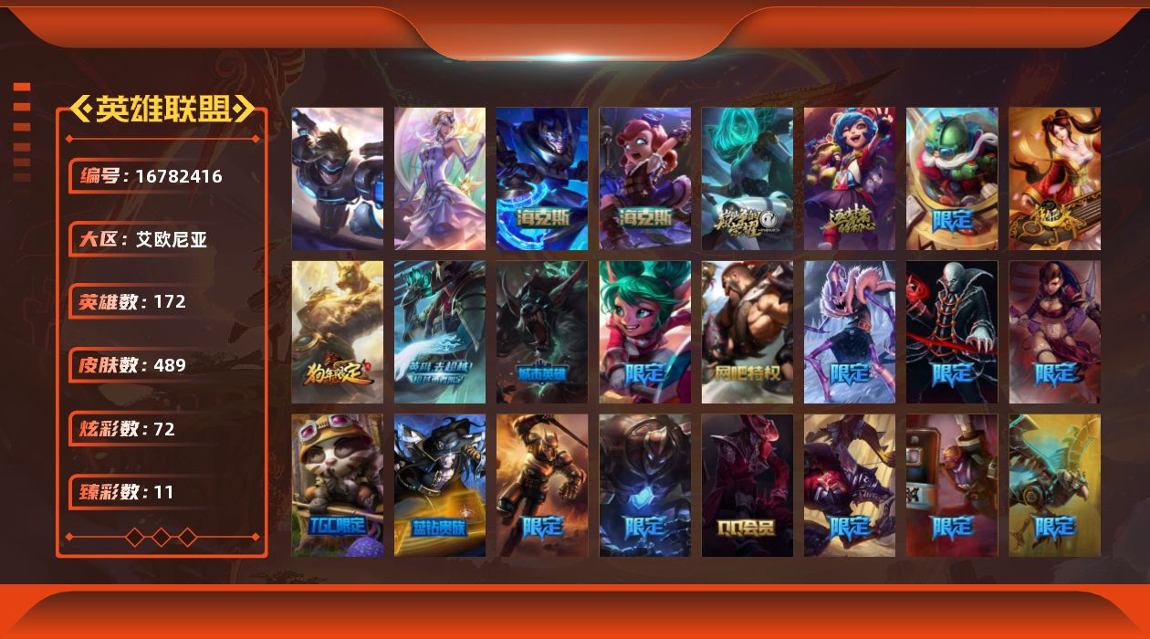 [16782416]【店主推荐捡漏号】未定级段位-172英雄-489皮肤-72炫彩-2终极-5神话-66限定-40传说-136史诗