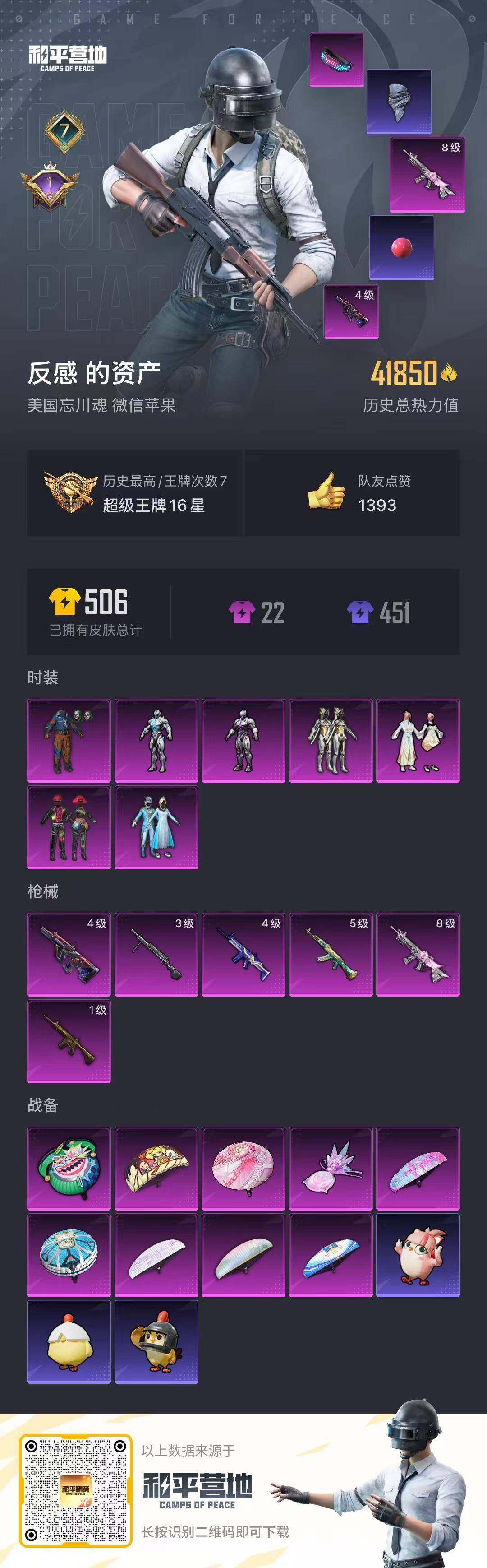[16783532]【特价出售/店主推荐】苹果 微信-7粉装-6特效枪-0载具-1粉色飞行器-41928热力值-7王牌印记-95套装-124枪皮