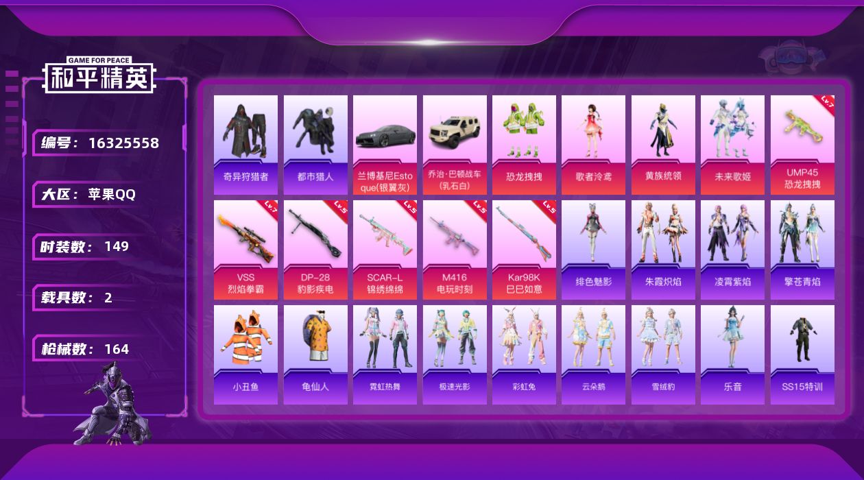 [16325558]【特价出售/店主推荐】苹果 手Q-4粉装-6特效枪-2载具-3粉色飞行器-57990热力值-11王牌印记-149套装-164枪皮【热门品类】:套装-都市猎人,套装-小丑鱼,套装-奇异狩猎者,套装-龟仙人【粉色套装