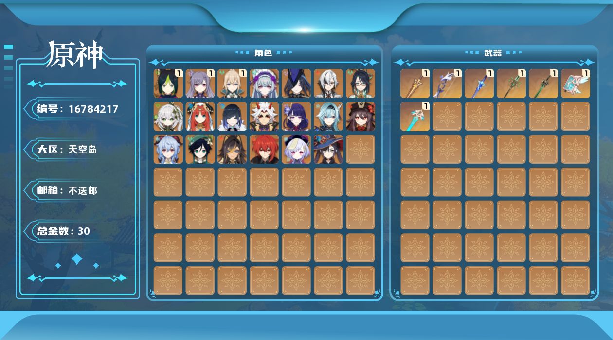 [16784217]57级/30黄/女主/20个五星角色/7个五星武器