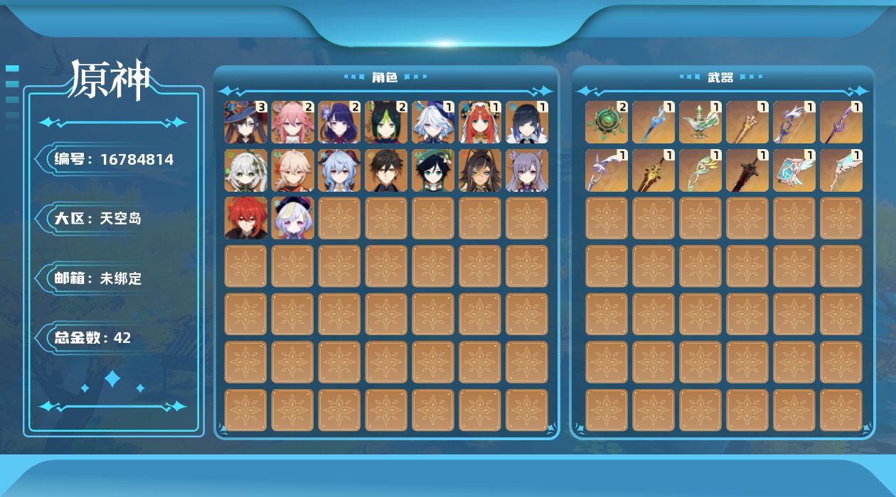 [16784814]60级/42黄/女主/17个五星角色/12个五星武器