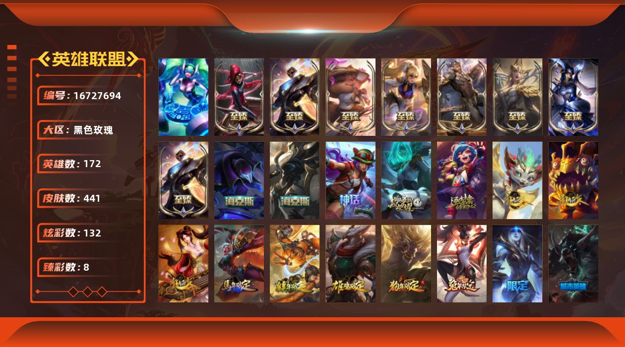 [16727694]【店主推荐捡漏号】黄金段位-172英雄-441皮肤-132炫彩-1终极-13神话-71限定-44传说-108史诗