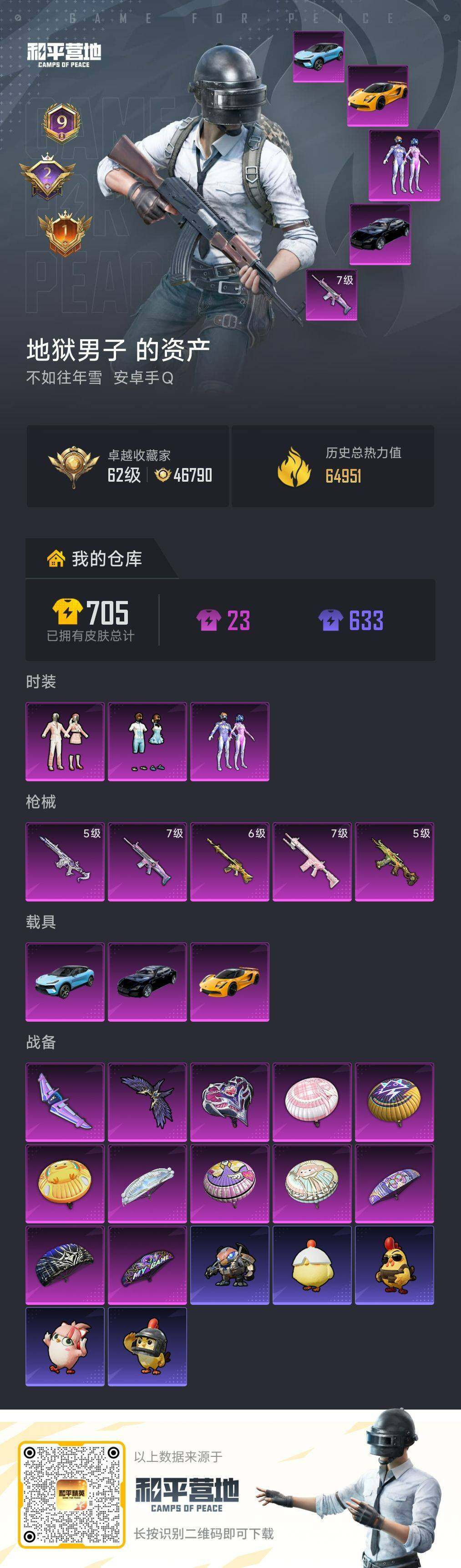 [16787006]安卓 手Q-3粉装-5特效枪-3载具-2粉色飞行器-64951热力值-9王牌印记-139套装-193枪皮