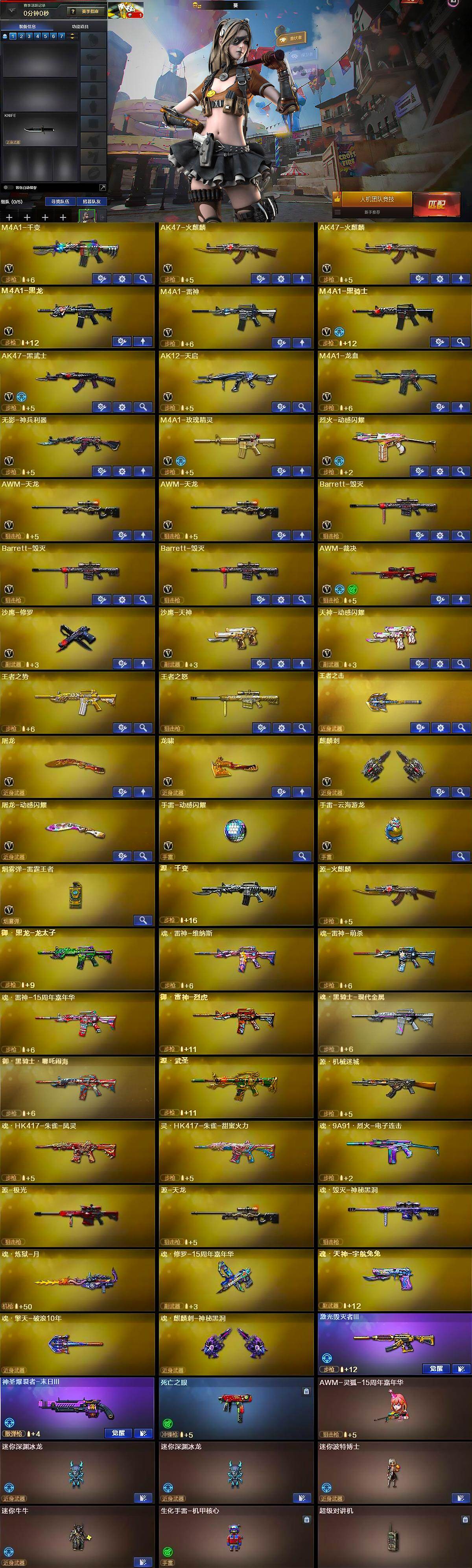 - [16715194]山西一区-41V-10王者武器数-2炫金武器数 【传说武器】:传说圣灵 【热门武器】:传说圣灵,Scar Light-白虎,M200-幻神*2,加特林-炼狱,沙鹰-修罗 【王者炫金武器】:王者雷怒,炫金火麒麟,炫金千变 【音效卡】:M4A1-雷神音效卡,Scar Light-白虎音效卡,70KG语音包,沙鹰-修罗-盛典舞曲音效卡*2,Barrett-碧霄极光音效卡,炼狱-百战金芒-庆典舞曲音效卡 【皮肤】:幻神-周瑜皮肤,AWM-裁决-凤灵皮肤,裁决-羽掣 皮肤,裁决-运输船 皮肤,雷神-暗月,雷神-荣耀之魄,雷神-宠儿-2019MVP,M4A1-再燃火线,雷神-神秘按键 皮肤,火麒麟-雷神,炼狱-月 皮肤,修罗-冠军之魂,屠龙-荣耀之锋*2,轻型军用手斧-再燃火线 【角色】:王者葵-惊若翩鸿,乔伊教练,初恋灵狐,风暴女,娟娟,葵-赛博朋克,0号玩家,灵狐者-X,灵狐者-黄金海岸,灵狐者-七夕宝贝,灵狐者-职业经理,麻雀,潘多拉-X,潘多拉-甜心教官,铁骑荣耀,维纳斯,职业选手,智影 【暴走生化】:超级对讲机 【挑战大师】:冰龙粉碎者-白马银枪*2 【英雄级武器】:M4A1-雷神,AK12-天启,AN94-超新星,AK47-黑鲨,Scar Light-白虎,王者冰魄-觉醒版,黑骑士-海王,王者之烈-觉醒版,QBZ-03-王者蔷薇-觉醒版,AWM-裁决,M200-幻神*2,Barrett-朱雀*2,加特林-炼狱,炼狱-百战金芒,沙鹰-修罗,沙鹰-天神,柯尔特-竞技荣光,屠龙*3,幻灵之锋,麒麟刺-百战金芒,王者之锋-觉醒版,高爆手雷-幻灵,高爆手雷-竞技荣光,高爆手雷-玄豹,闪光弹-幻灵*2,闪光弹-竞技荣光,烟雾弹-幻灵,烟雾弹-竞技荣光,烟雾弹-雷霆王者-觉醒版,M4A1-赤狱骑士,Barrett-碧霄极光 【道具】:BS战队炫彩背包,亚洲杯纪念炫彩背包,女皇终结者-背包,炫彩背包,百战金芒炫彩背包,虎牙炫彩背包,超级背包,女皇终结者-魔龙之吻,救世主-黑桃战神,绿色巨人,灵魂忍者*2,变异宝贝,迷雾幽灵*2,夺命之镰,防化服*3,金色流光-枪王排位,流光-鎏金之域,枪王排位29赛季金色流光,语音特效-盛典烟火,萌萌小葵表情,防弹头盔*3,防弹衣*3,C4工具钳*3,手雷包*3 【特殊枪械】:1白虎,1炼狱