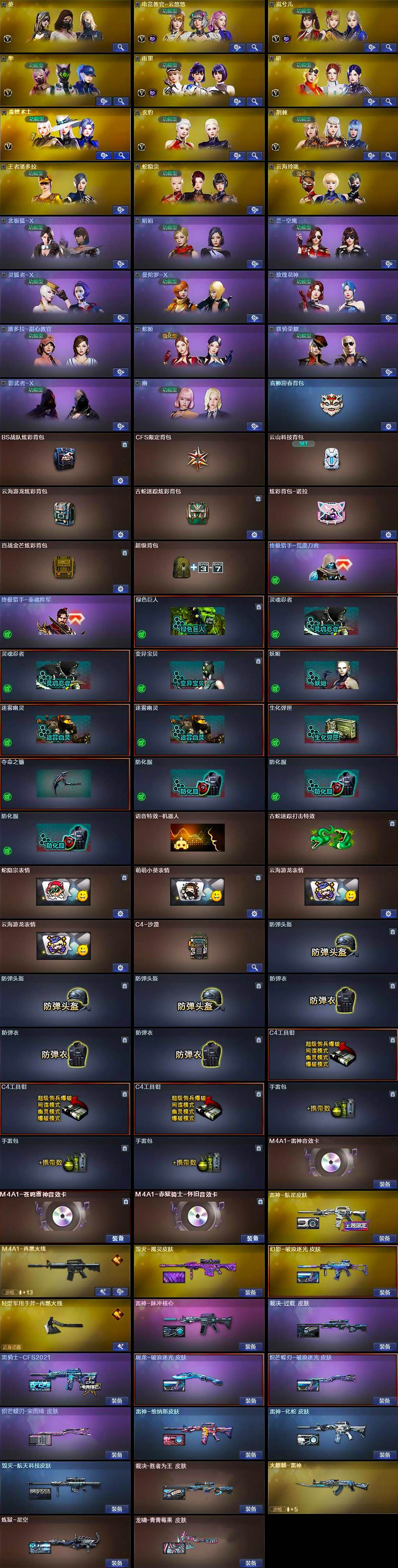 【皮肤】:裁决-过载 皮肤,裁决-胜者为王 皮肤,雷神-脉冲核心,雷神-维纳斯皮肤,雷神-航星皮肤,雷神-化蛇 皮肤,M4A1-再燃火线,火麒麟-雷神,毁灭-魔灵皮肤,毁灭-航天科技皮肤,黑骑士-CFS2021,幻影-破浪逐光 皮肤,炼狱-星空,屠龙-破浪逐光 皮肤,轻型军用手斧-再燃火线,龙啸-青青莓果 皮肤,炽芒蝶刃-破浪逐光 皮肤,炽芒蝶刃-宋雨琦 皮肤