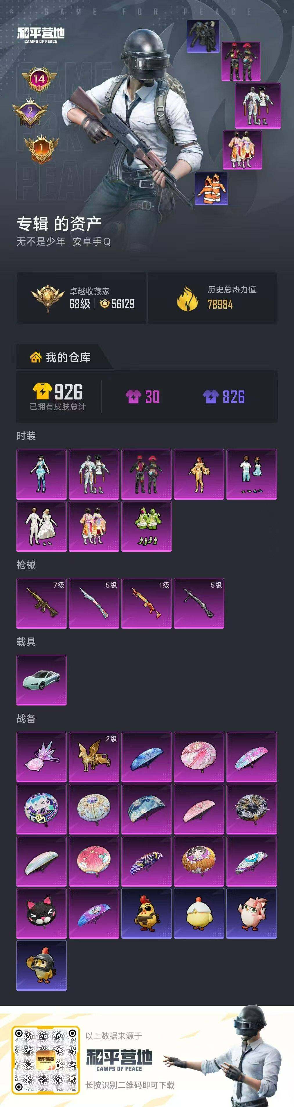 [16808359]安卓 手Q-8粉装-4特效枪-1载具-2粉色飞行器-78984热力值-14王牌印记-217套装-258枪皮