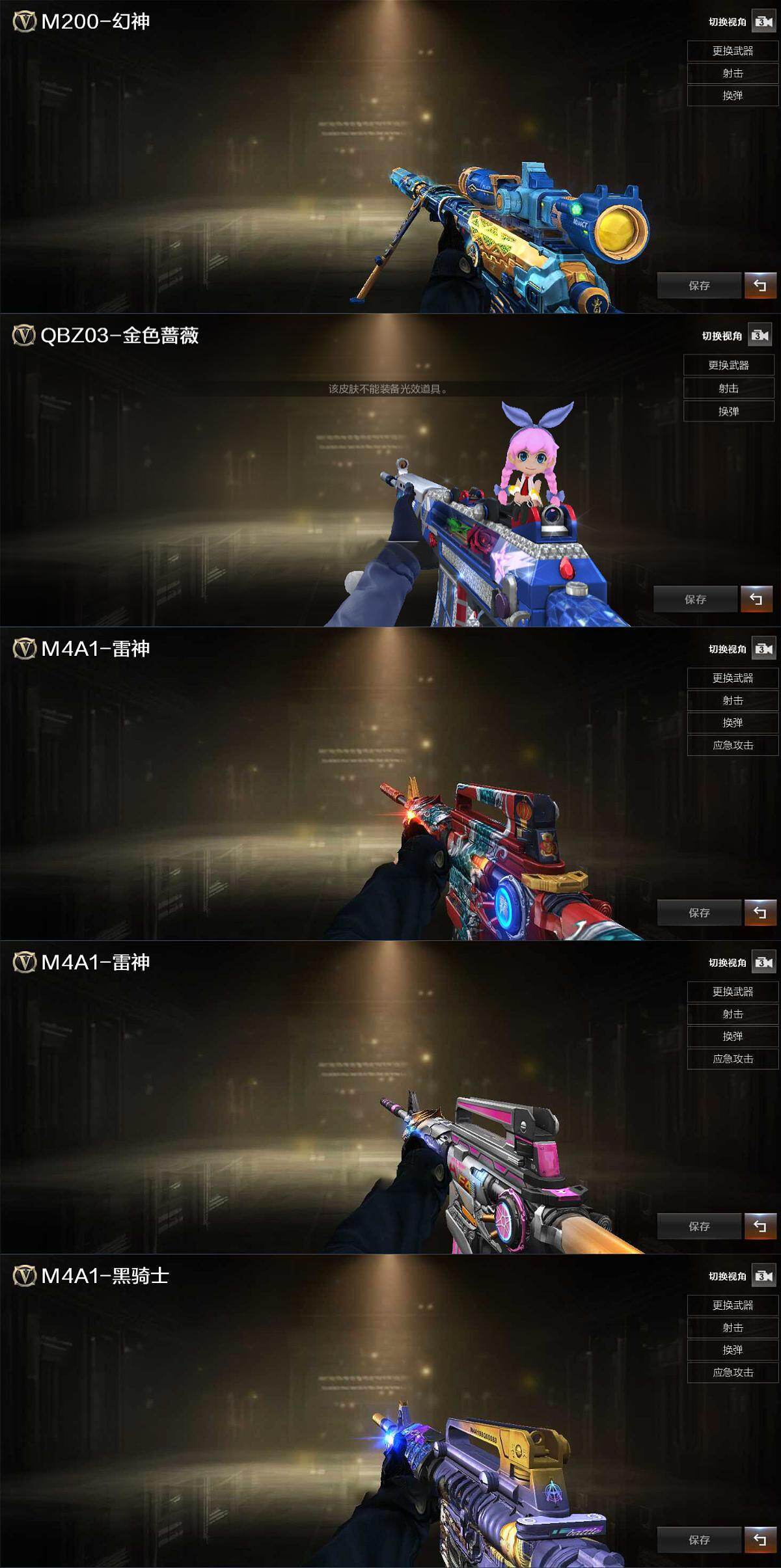 【皮肤】:幻神-曹操 皮肤,金色蔷薇-电竞之星 皮肤,M4A1-雷神-新春神龙皮肤,雷神-神秘按键 皮肤,黑骑士-破界 皮肤