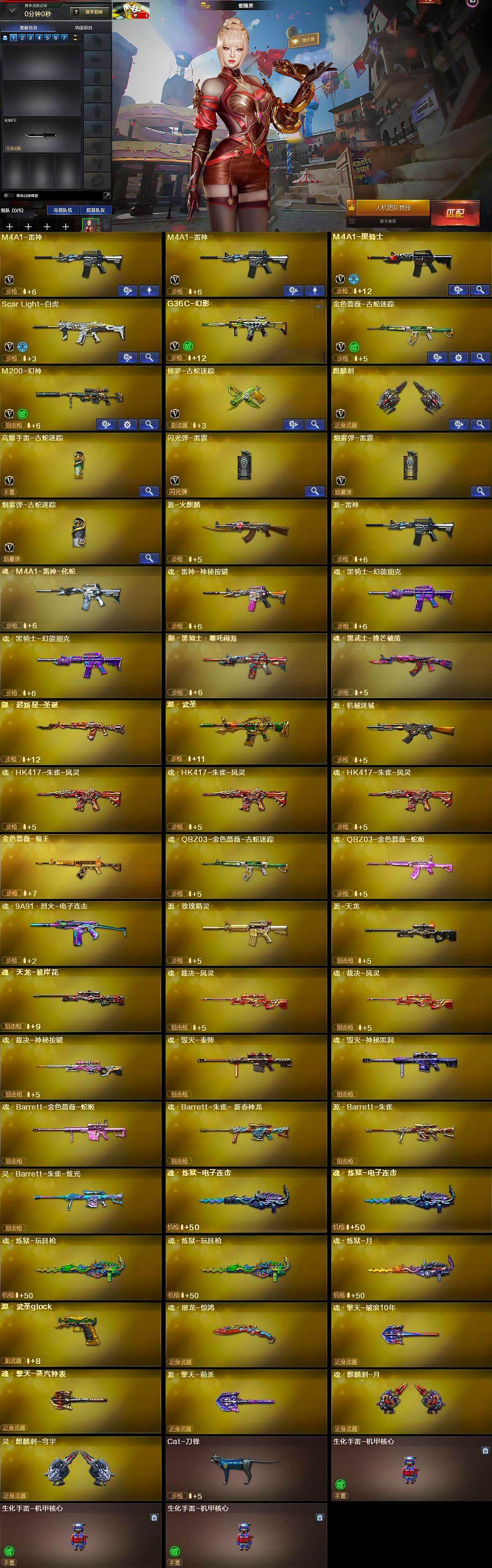 - [16881273]陕西一区-37V-0王者武器数-0炫金武器数 【热门武器】:M14EBR-玄武,M4A1-青龙,M200-幻神,金色蔷薇-古蛇迷踪,修罗-古蛇迷踪,QBZ03-街机,金色小号,M4A1-黑骑士,COP-堕天神,COP 357-幻灵,沙鹰-修罗 【音效卡】:M4A1-黑骑士音效卡 【皮肤】:幻神-纸灯龙皮肤,火麒麟-平天大圣,火麒麟-心动糖果,毁灭-暗月,毁灭-英雄计划 皮肤,黑骑士-暗月,战神-紫绶金章皮肤 【角色】:隼,战地猎狐,王者潘多拉,蛇隐宗,奇洋探员,云海玲珑,暗夜-X,初恋灵狐,芳心审判者,飞虎队-X,风暴女,嘉年华灵狐,灵狐者-X,曼陀罗-X,潘多拉-X,蛇姬,斯沃特-X,兔囡囡,维纳斯,雪莉杨-摸金校尉 【人偶武器】:巴雷特-零-水下丽影,AWM-灵狐-15周年嘉年华,迷你波特博士,灵狐娃娃手雷 【暴走生化】:超级对讲机 【挑战大师】:冰龙粉碎者-白马银枪,激光毁灭者III-白马银枪*2,神圣爆裂者-末日III 【英雄级武器】:AK47-火麒麟,M4A1-黑骑士,M4A1-青龙,M14EBR-玄武,无影-神兵利器,黑武士-锦绣游龙,金色蔷薇-古蛇迷踪,Barrett-毁灭,M200-幻神,沙鹰-修罗,COP-堕天神,COP 357-幻灵,修罗-古蛇迷踪,麒麟刺-堕天神,龙啸-堕天神,高爆手雷-堕天神*5,高爆手雷-幻灵,高爆手雷-古蛇迷踪,闪光弹-堕天神*5,闪光弹-幻灵,烟雾弹-堕天神*5,烟雾弹-幻灵,烟雾弹-古蛇迷踪,M4A1-赤狱骑士,AWM-昌龙 【道具】:CFS限定背包,亚洲杯纪念炫彩背包,全能枪王背包,古蛇迷踪炫彩背包,超级背包,黑桃战神背包,女皇终结者-魔龙之吻,救世主-黑桃战神,绿色巨人,灵魂忍者,迷雾幽灵,夺命之镰,防化服*3,金色流光-枪王排位*2,星辰流光-枪王排位,枪王排位28赛季金色流光,枪王排位29赛季金色流光,古蛇迷踪打击特效,蛇隐宗表情,EP战队名片,防弹头盔*6,防弹衣*6,C4工具钳*6,手雷包*6 【特殊枪械】:1黑骑士