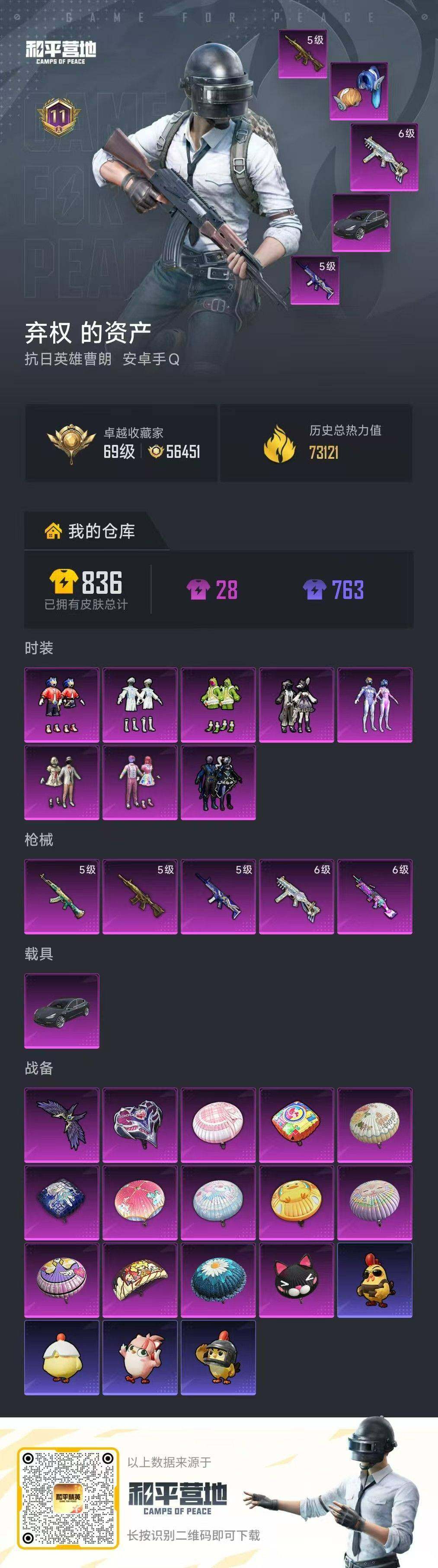 [16812376]安卓 手Q-8粉装-5特效枪-1载具-1粉色飞行器-73121热力值-11王牌印记-170套装-228枪皮