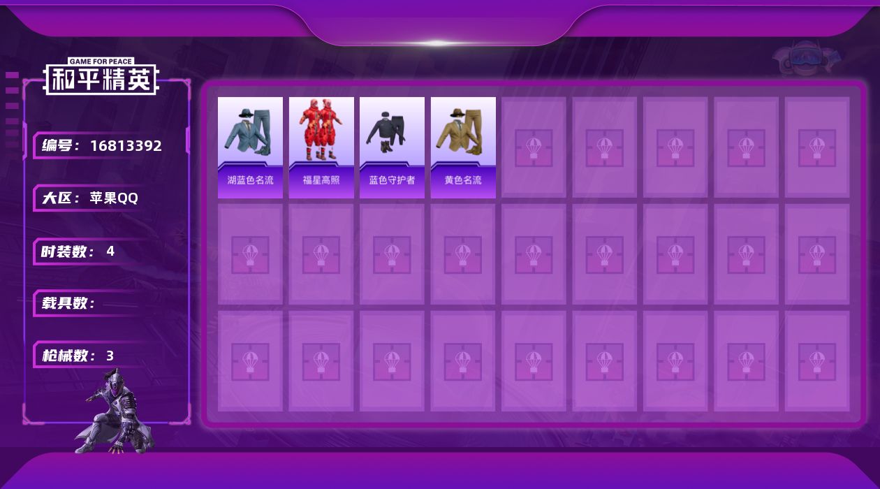 - [15428622]浙江一区-98V-16王者-1炫金 【传说武器】:传说辉光,传说幽瞳 【热门武器】:传说辉光,传说幽瞳,G36C-幻影,QBZ03-金色蔷薇*2,Scar Light-白虎,M200-幻神,柯尔特-荣耀世冠白鲨2023,金色蔷薇-古蛇迷踪,修罗-古蛇迷踪,M200-竞技荣光,白虎-电玩蓝兔,柯尔特-冠军之特,M4A1-黑骑士,汤姆逊-烈龙,火麒麟-绝迹,COP-白鲨,USP-雷暴,沙鹰-修罗*5,炽芒蝶刃,炽芒蝶刃-破浪逐光 皮肤 【王者炫金武器】:王者星霆,炫金千变,王者之魄高爆手雷,王者之魄闪光弹*2,王者之魄烟雾弹*2 【音效卡】:M200-幻神音效卡,AK47-火麒麟音效卡,M4A1-雷神音效卡,M4A1-黑龙音效卡,M4A1-黑骑士音效卡,Barrett-毁灭音效卡,Barrett-极光音效卡 【皮肤】:幻神-宠儿-2021MVP,M200-幻神-荣耀世冠白鲨,M200-幻神-N9-2022MVP,幻神-电流骇客 皮肤,幻神-荣耀世冠白鲨2023 皮肤,白虎-大汉风骨,白虎-巅峰荣耀 皮肤,QBZ03-荣耀世冠白鲨,QBZ03-CFS2024 皮肤,金色蔷薇-破浪逐光 皮肤,裁决-流光秘银,雷神-荣耀之魄,雷神-耀金皮肤,雷神-传奇N9,雷神-宠儿-2019MVP,雷神-维纳斯皮肤,火麒麟-华夏之心,火麒麟-轻羽皮肤,火麒麟-心动糖果,毁灭-暗月,毁灭-荣耀之怒,毁灭耀金皮肤,毁灭-冠军之怒,毁灭-百城浙江 皮肤,M4A1-千变-孔明皮肤,黑龙-能量核心,黑龙-暗月,黑骑士-冠军之势,战神-紫绶金章皮肤,战神-流金岁月皮肤,AK47-B-常胜将军-刘备,AK47-B-常胜将军-孙权,屠龙-荣耀之锋,屠龙-星火燎原,麒麟刺-荣耀世冠白鲨,炽芒蝶刃-破浪逐光 皮肤 【角色】:炫,电竞教官-云悠悠,月兔特工,关小雨,晴雅,华,战地猎狐,王者炫,蛇隐宗,奇洋探员,乔伊教练,炽天使,暗夜-X,初恋灵狐,芳心审判者,飞虎队-X,风暴女,嘉年华灵狐,零-水下丽影,灵狐者-X,灵狐者-职业经理,龙儿,曼陀罗-X,潘多拉-X,青霞仙子,蛇姬,斯沃特-X,铁骑荣耀,铁扇公主-暗灵,游珑儿 【人偶武器】:火麒麟-绝迹,COP-白鲨,天龙-曼陀罗,M4A1-雷神-精英刀锋,AWM-灵狐-15周年嘉年华,AK47-斯沃特,迷你超能女侍 【暴走生化】:超级对讲机 【挑战大师】:激光