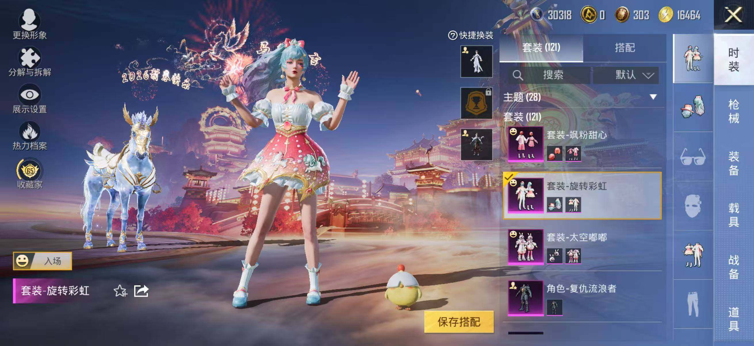 角色-复仇流浪者,套装-太空嘟嘟,套装-旋转彩虹,套装-冰川红玫,套装-飒粉甜心