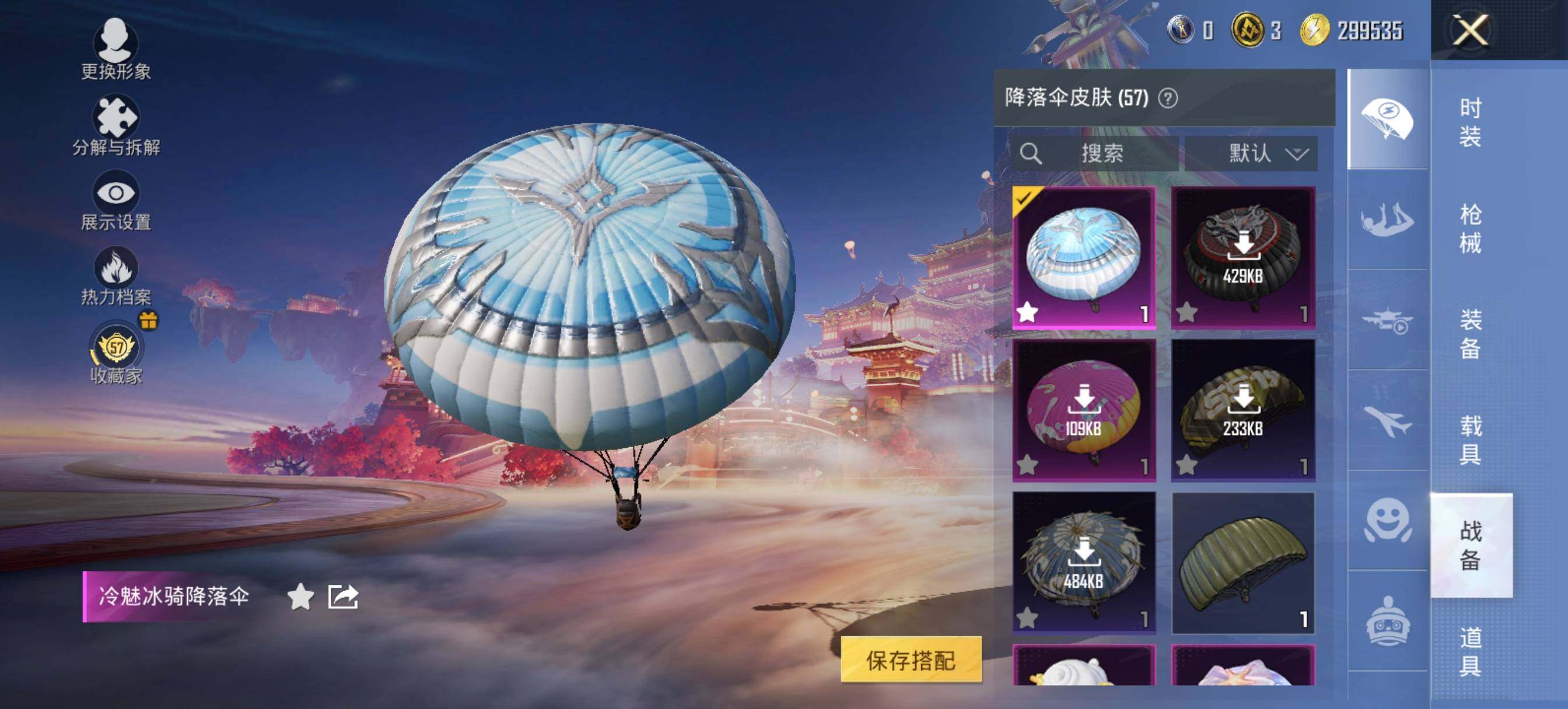 【粉色降落伞】:花间之火降落伞,潮汐统领降落伞,焰龙焚天降落伞,蓝莓炮弹降落伞,焦糖拿铁降落伞,碧影闪光降落伞,冷魅冰骑降落伞,星夜魔法师降落伞,彩虹甜喵降落伞,青空秋雨降落伞,创世·救赎降落伞,盛世惊鸿降落伞,星穹咏叹调降落伞,荧海星豚降落伞,喜羊羊与灰太狼降落伞