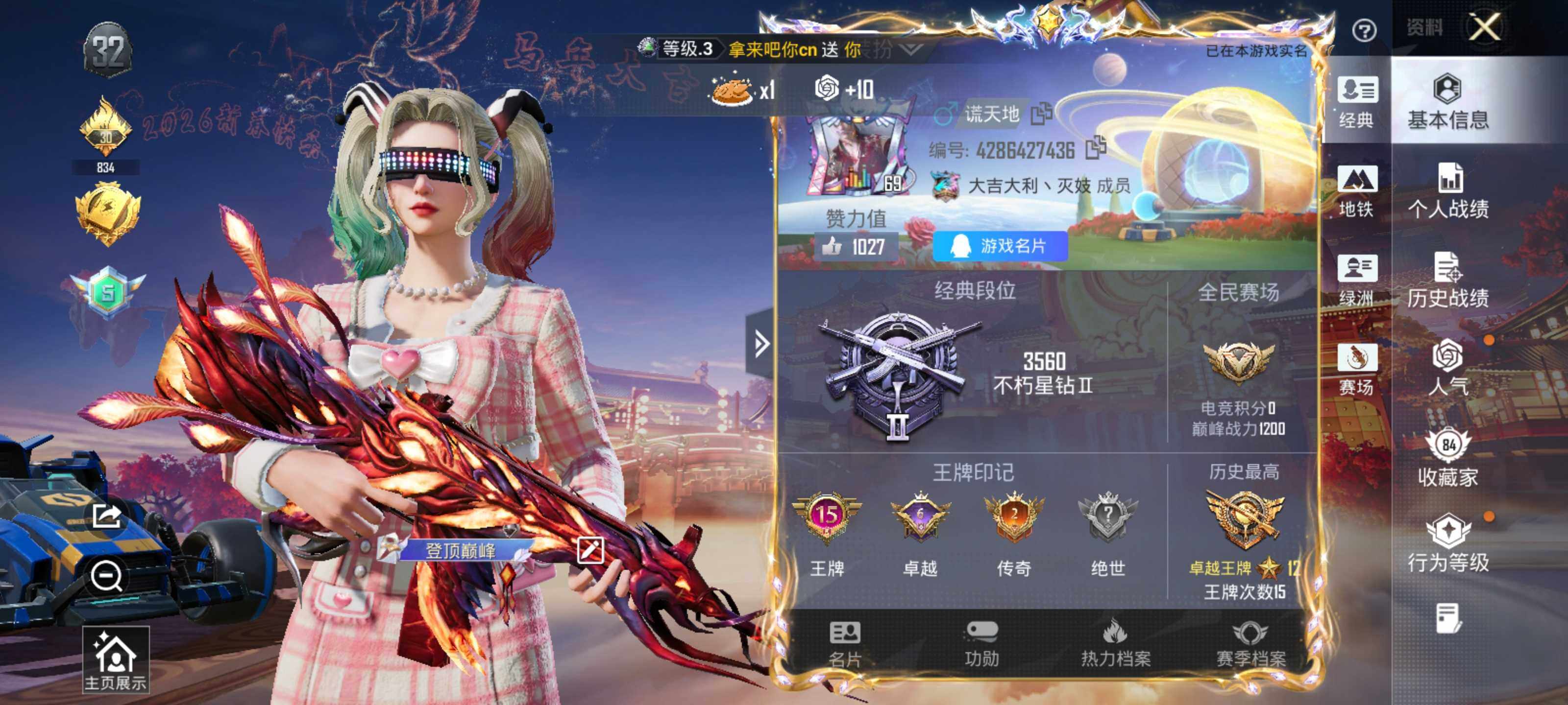 - [12748019]地铁满天赋 安卓 手Q-4粉装-4特效枪-3粉色飞行器-5.5w热力值-13王牌印记-129套装-183枪皮【热门品类】:套装-深海小丑鱼,套装-小丑鱼,套装-奇异狩猎者,套装-龟仙人,套装-粉红小猪,角色-8号机,角色-Mark.06【粉色套装】:角色-复仇流浪者,粉装-蜜语绒猫,角色-初号机 觉醒Ver.,粉装-雪月幻音【粉色枪皮等级】:M416-电玩时刻(五级),GROZA-旋转彩虹(七级),Kar98K-巳巳如意(五级),DP-28-豹影疾电(五级)【粉色飞行器】:梦幻火箭飞行器,镜域双华-灵镜之阶,龙翔九天飞行器