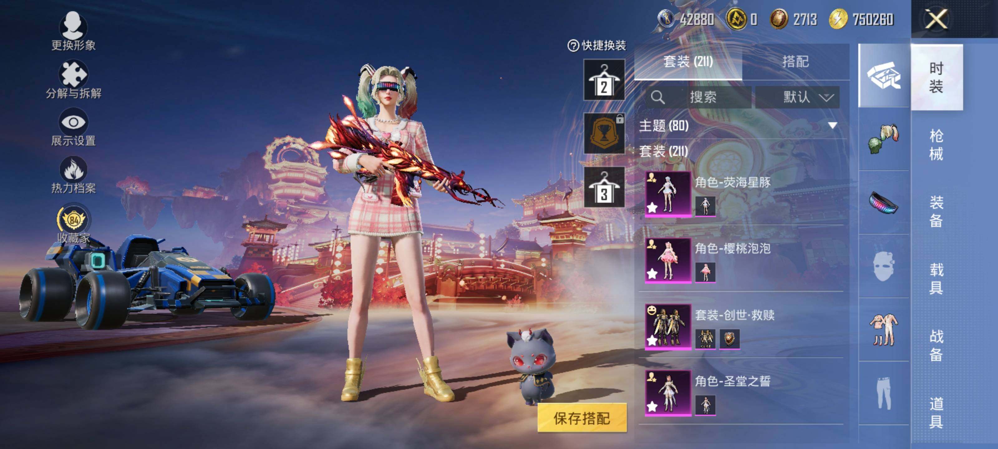 【粉色套装】:粉装-梦幻火箭,粉装-放客神游,粉装-冰霜白皇,粉装-飓风飞鹰,粉装-彩虹鹿灵,粉装-山涧鹿灵,角色-初号机款机体服,粉装-灵感创作师,粉装-暗夜鎏金,粉装-第五大道,粉装-飒粉甜心,角色-白勺歌姬,角色-呆萌星弥,角色-小可学妹,粉装-未来歌姬,角色-星云暗核,粉装-傲傲奶龙,角色-圣堂之誓,角色-光极星,套装-创世·救赎,角色-樱桃泡泡,角色-荧海星豚