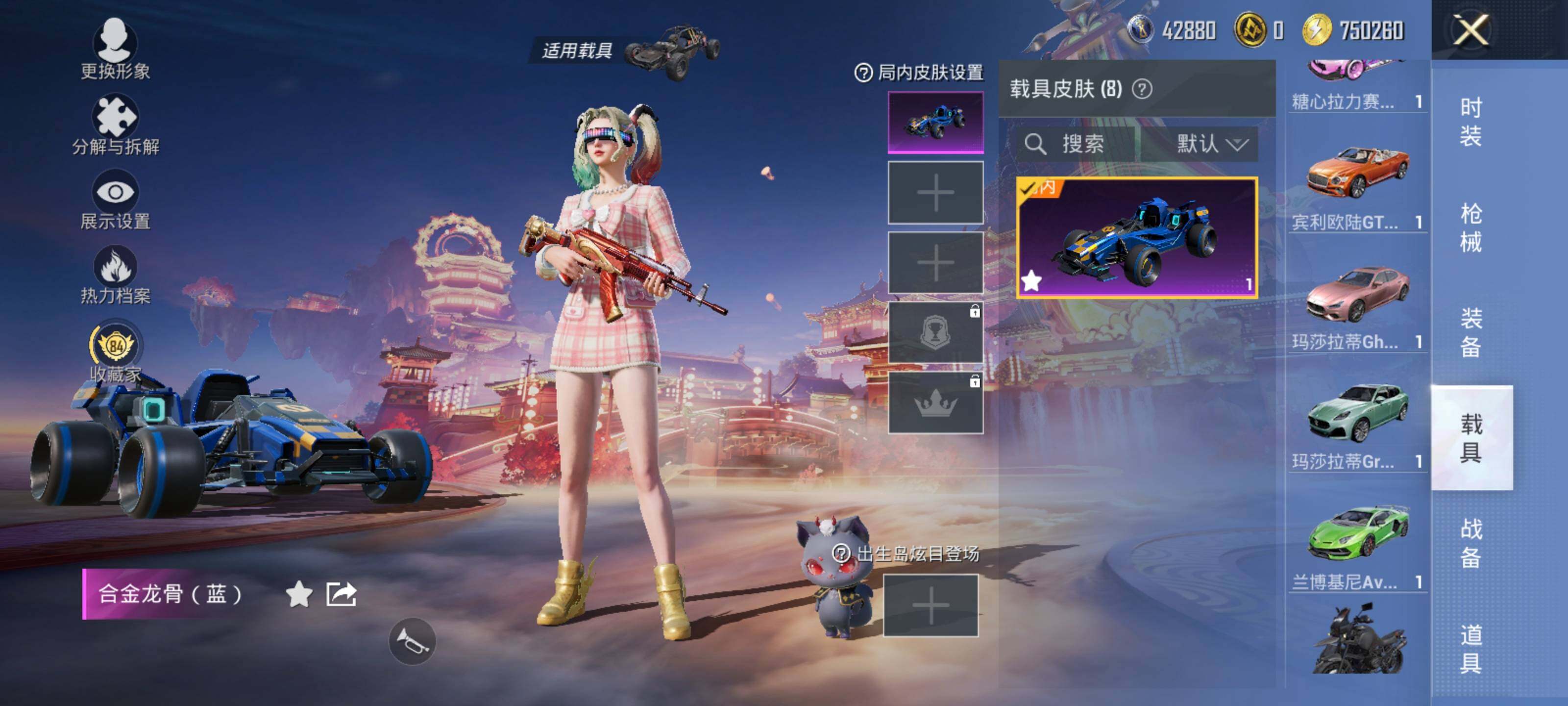 【粉色载具】:兰博基尼Aventador SVJ(翡翠绿),玛莎拉蒂Ghibli(粉),玛莎拉蒂Grecale(薄荷绿),宾利欧陆GT敞篷(火焰橘),合金龙骨(蓝),糖心拉力赛车(波动紫),圣光之翼(静谧黑),护世瑞兽