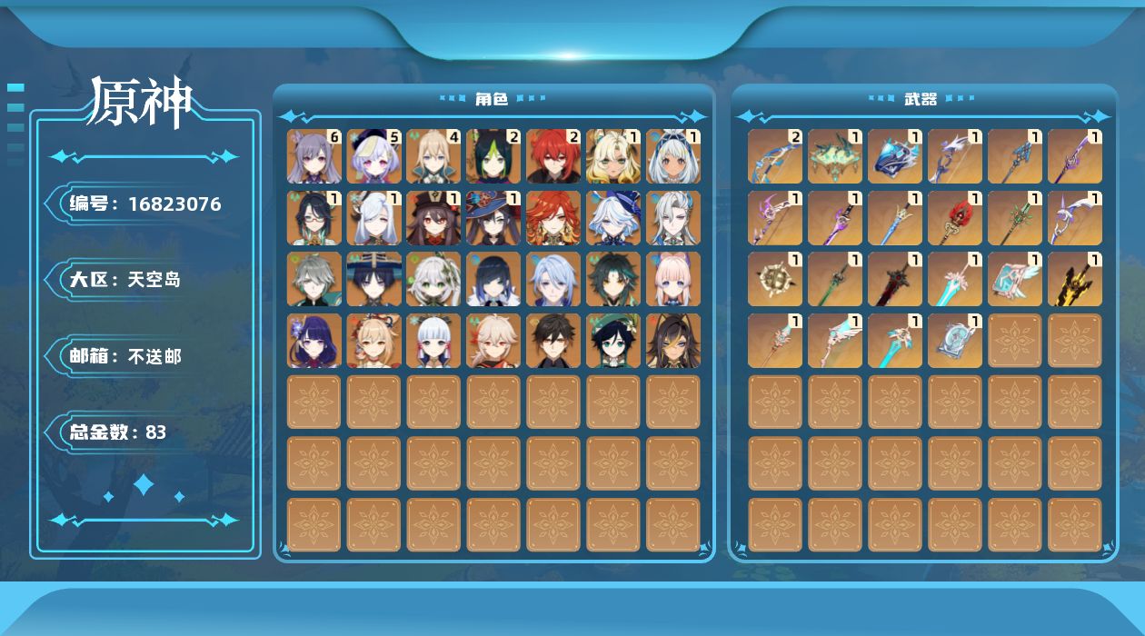 [16823076]60级/83黄/女主/31个五星角色/26个五星武器