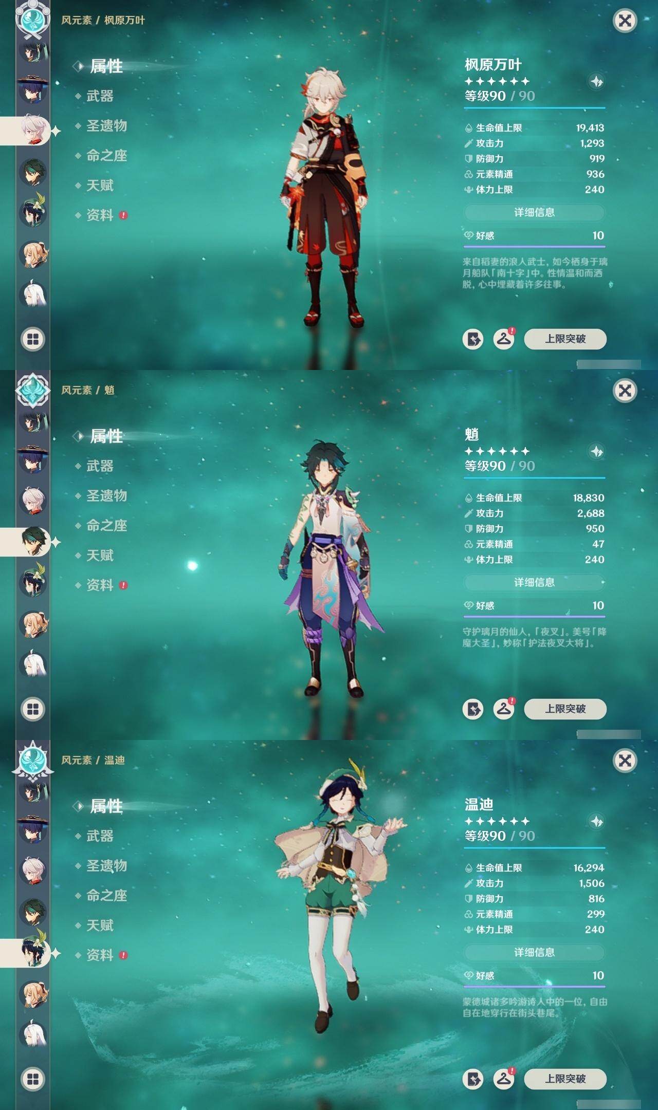 钟离,枫原万叶,魈,温迪,琴,申鹤,神里凌华,雷电将军,珊瑚宫心海,宵宫,胡桃,七七,刻晴,莫娜,迪卢克