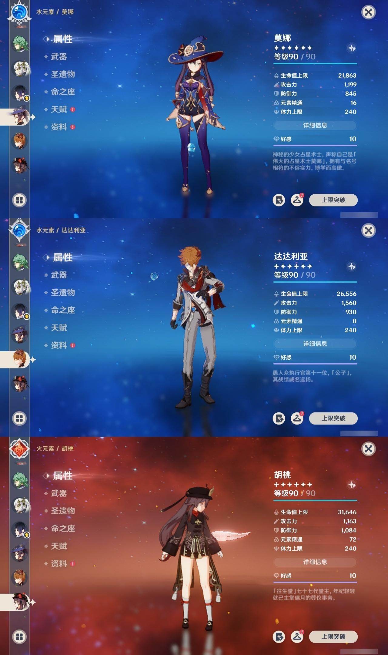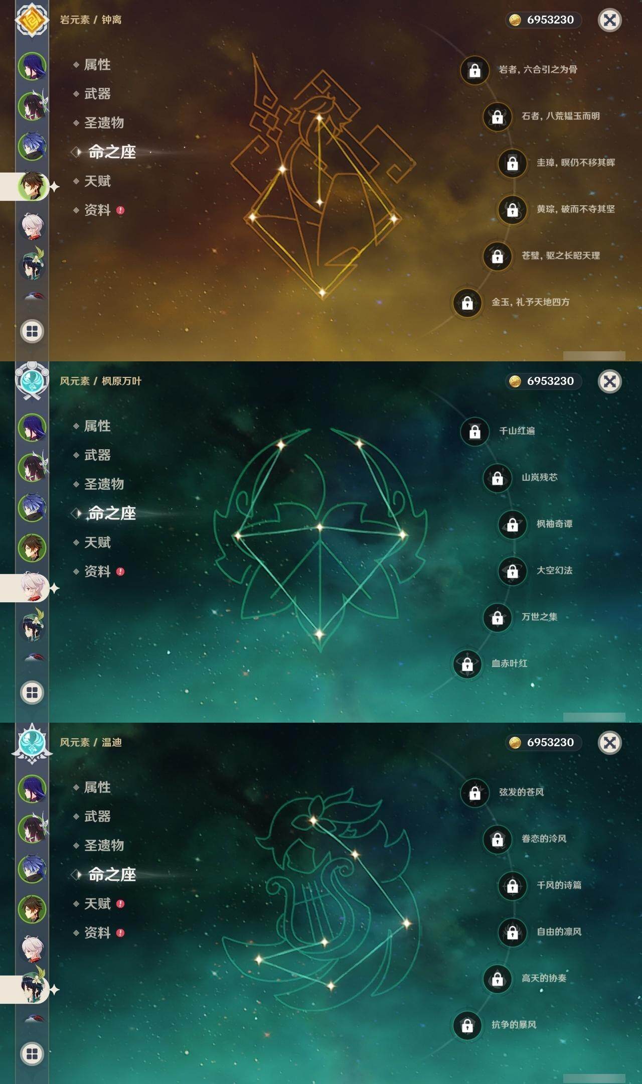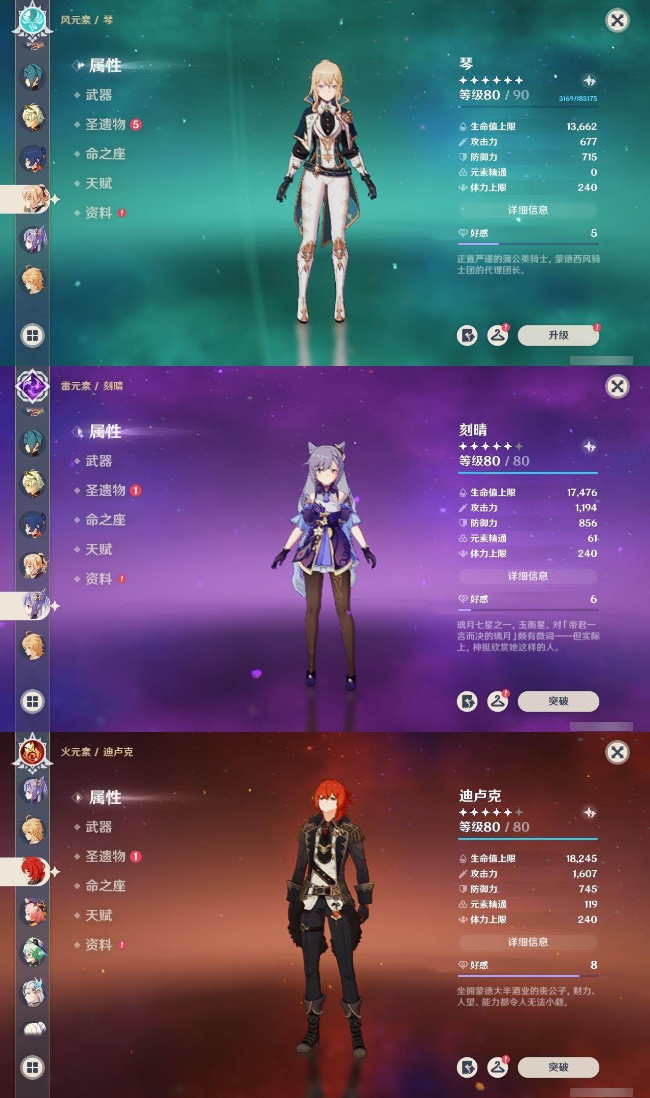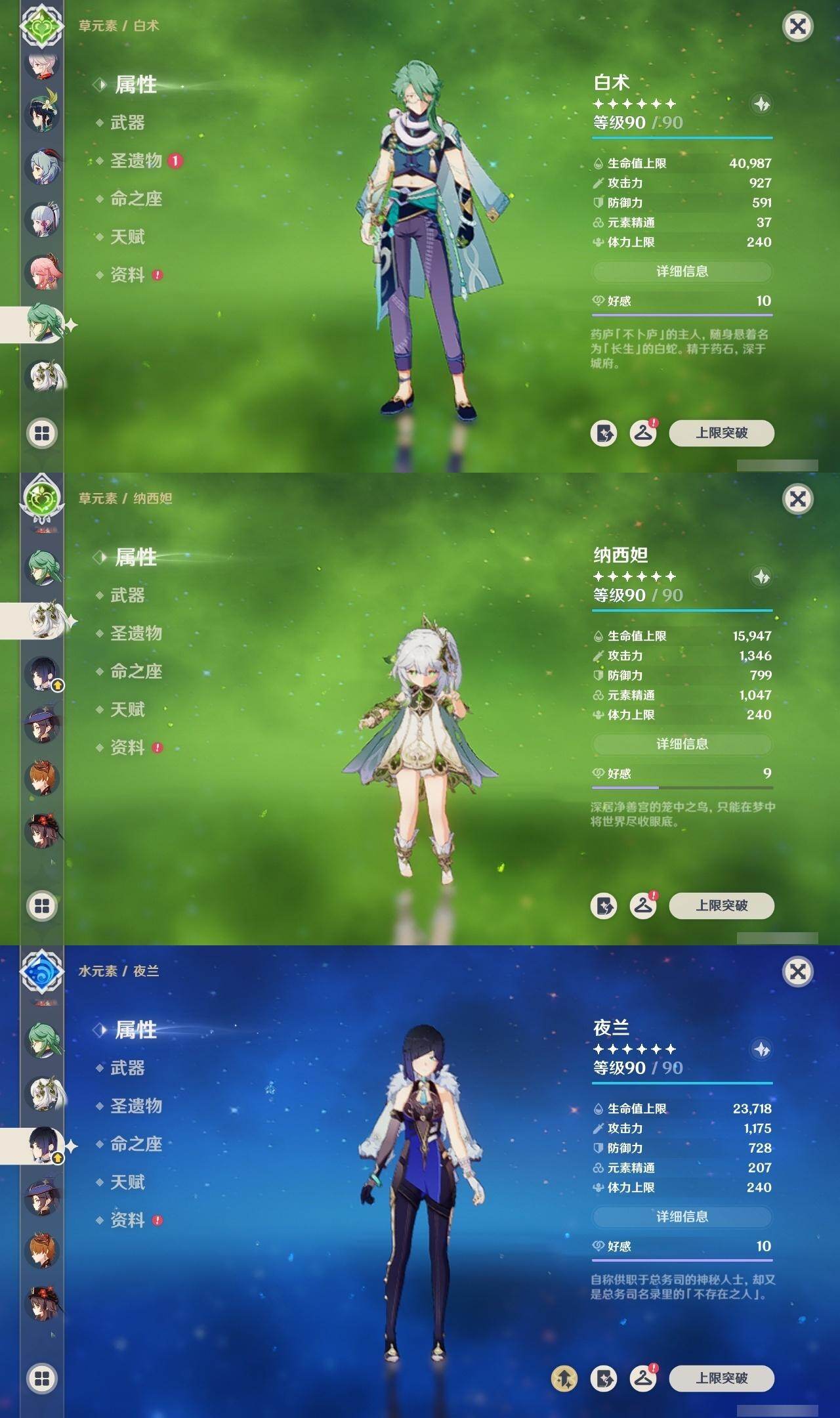 0命那维莱特,0命白术,0命纳西妲,1命夜兰,0命八重神子,3命雷电将军,0命枫原万叶,0命神里绫华,0命钟离,1命胡桃,0命甘雨,0命温迪,0命达达利亚,2命刻晴,0命七七,2命琴,3命莫娜,3命迪卢克,0命梦见月瑞希,0命菲林斯,0命哥伦比娅,精1若水,精1冬极白星,精1薙草之稻光,精1飞雷之弦振,精1雾切之回光,精1无工之剑,精1护摩之杖,精2四风原典,精3和璞鸢,精1天空之翼,精1阿莫斯之弓,精1天空之刃