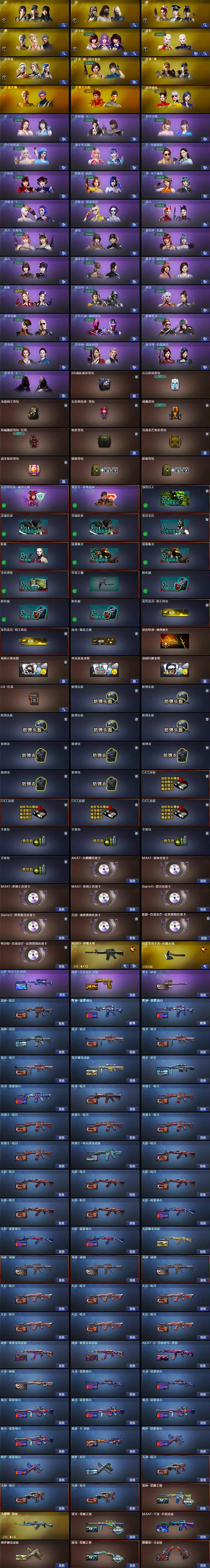 【音效卡】:AK47-火麒麟音效卡,M4A1-雷神音效卡,M4A1-黑骑士音效卡*2,Barrett-毁灭音效卡,Barrett-碧霄极光音效卡,白虎-盛典舞曲音效卡,炼狱-百战金芒-庆典舞曲音效卡,柯尔特-百战金芒-庆典舞曲音效卡