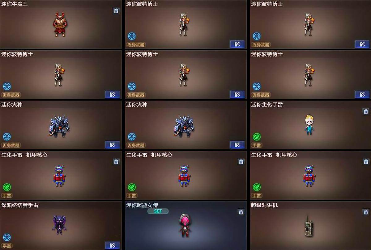 【人偶武器】:天龙-曼陀罗,火麒麟-灵狐,异变清道夫-蛇影双骄,AWM-灵狐-15周年嘉年华*2,COP-旗袍,迷你裂空之翼*3,迷你牛魔王,迷你波特博士*5,迷你火
