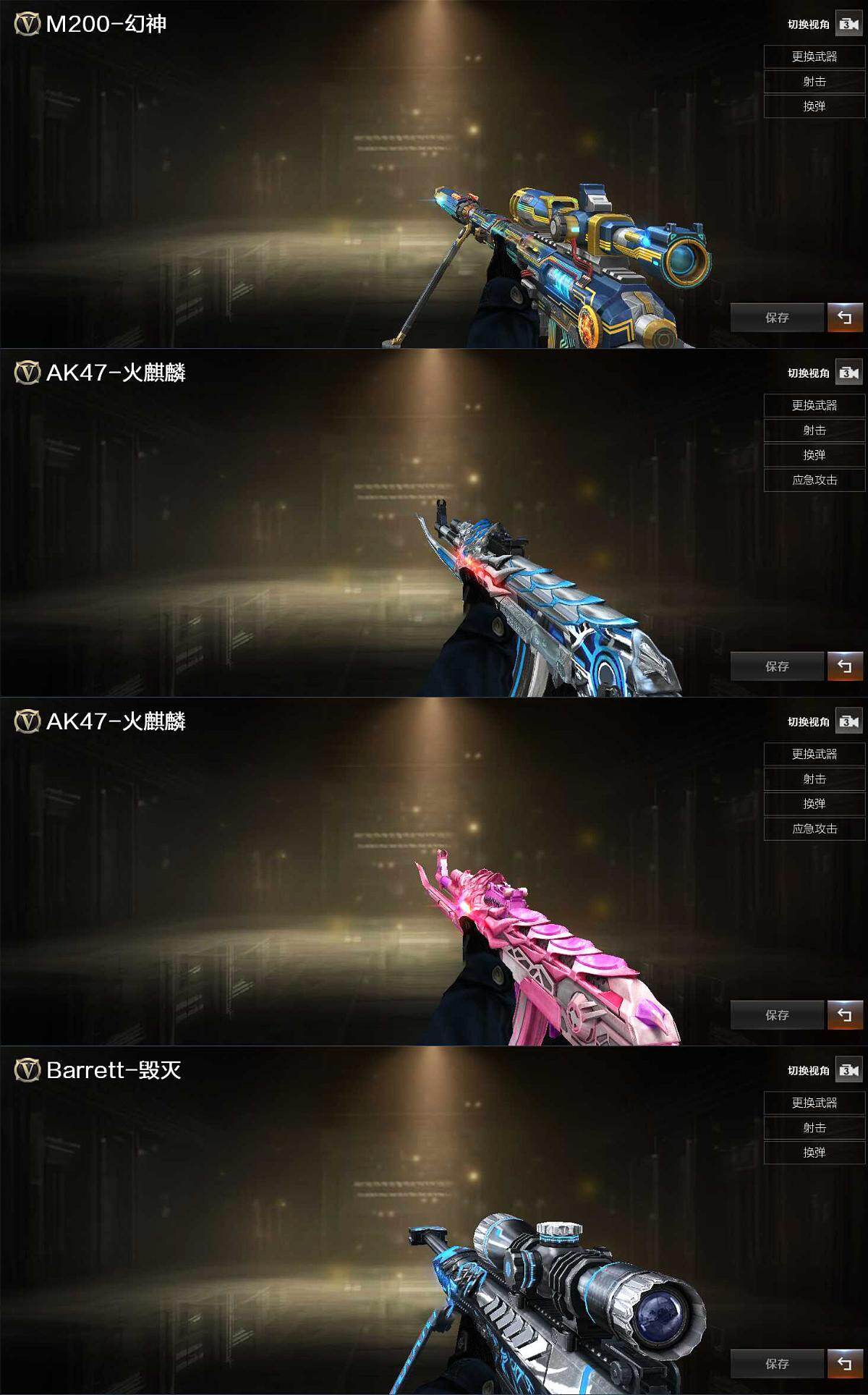 【英雄级武器】:AK47-火麒麟,无影-神兵利器,黑武士-锦绣游龙,M200-幻神