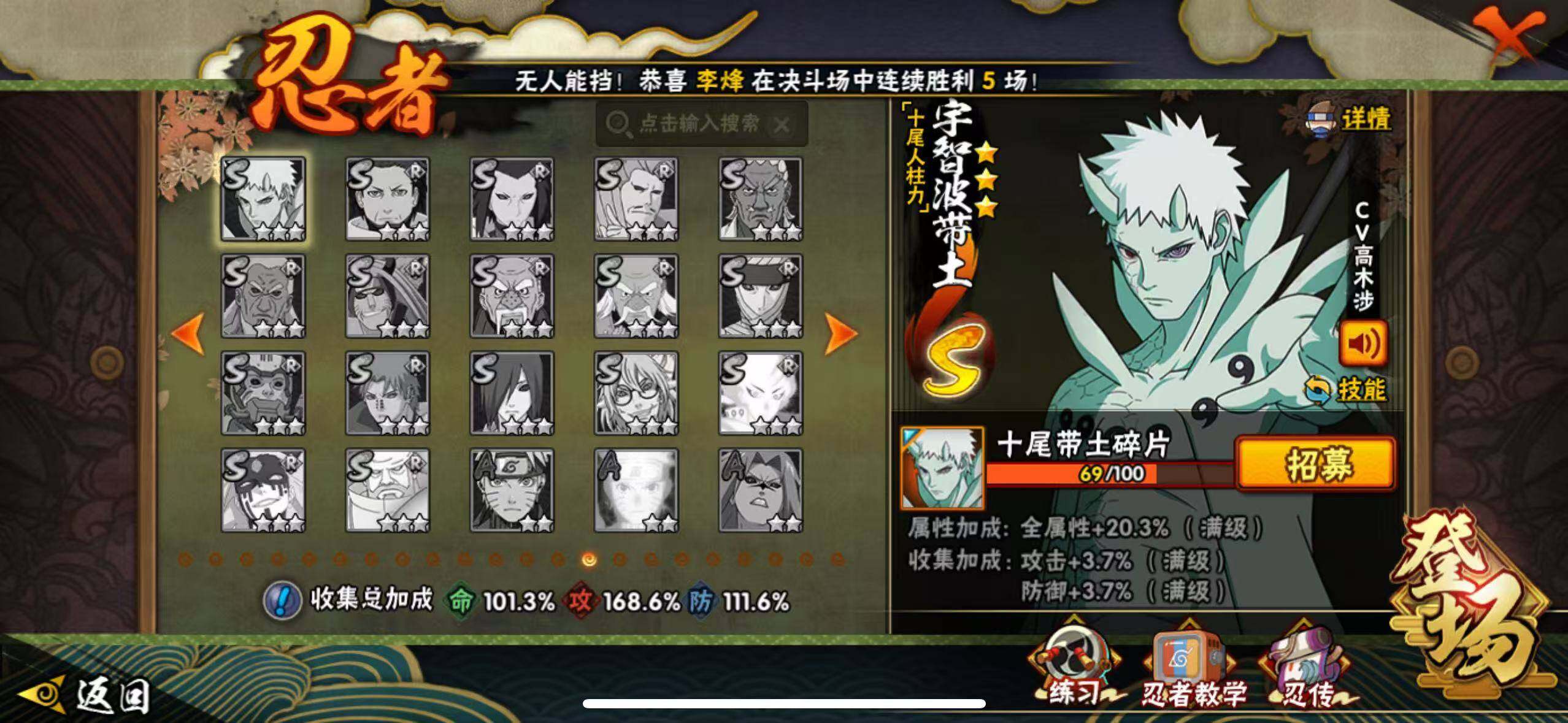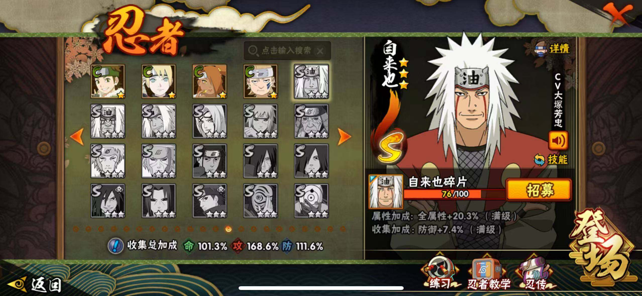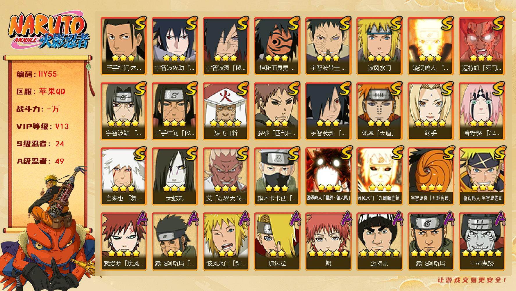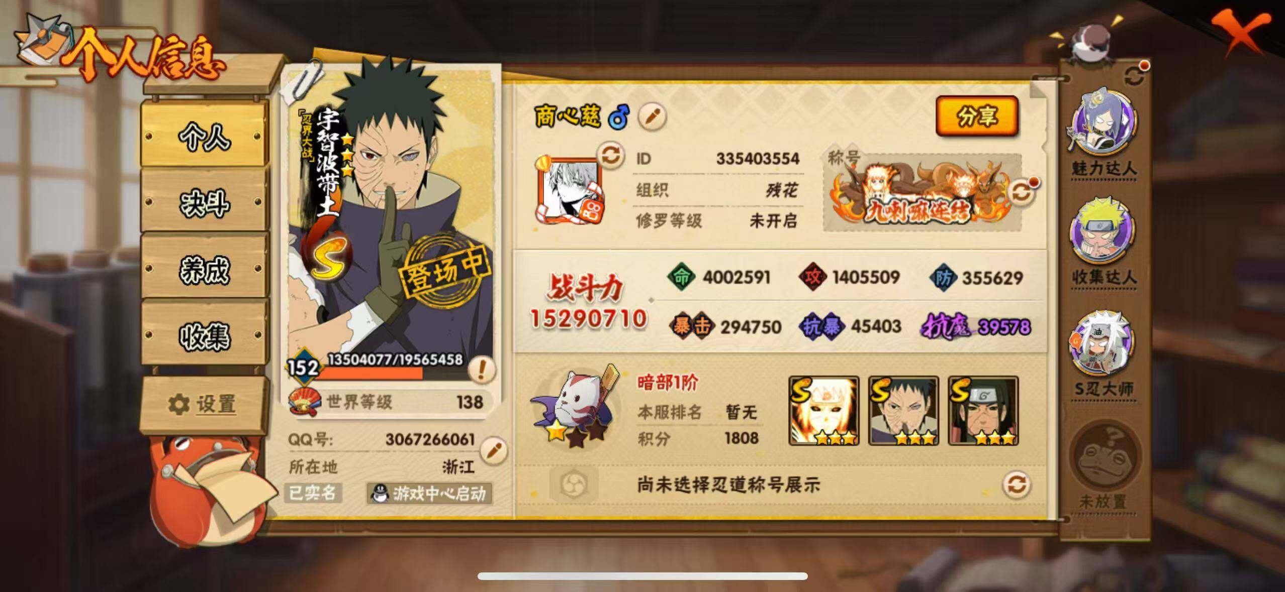 [16694826]V13,1526万战力,24s,49a,十尾战场主场景,多点券a氪金通,十尾带土69片,死二42片,自来也76片,仙自60片