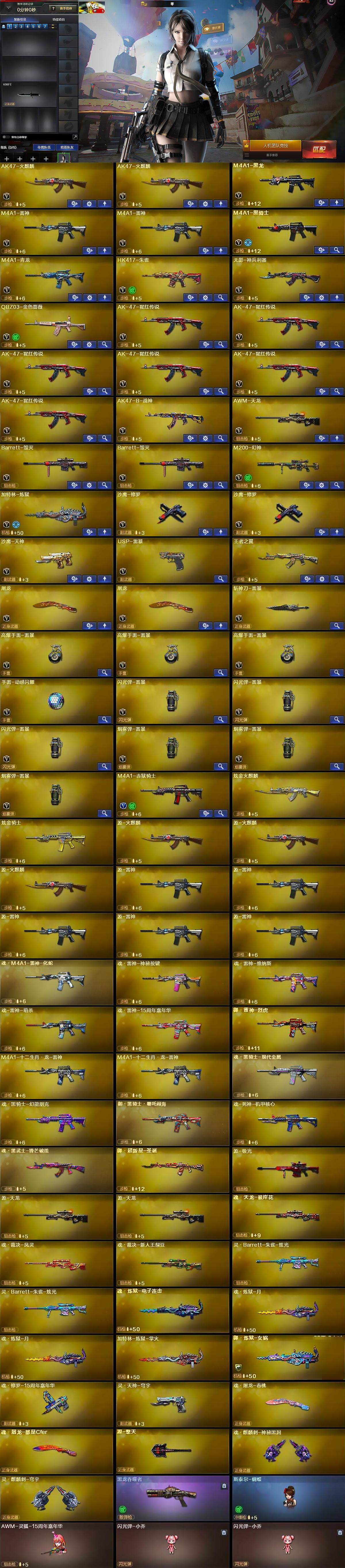 【英雄级武器】:AK47-火麒麟*2,M4A1-黑龙,M4A1-雷神*2,M4A1-黑骑士,M4A1-青龙,HK417-朱雀,无影-神兵利器,QBZ03-金色蔷薇,AK-47-猩红传说*6,AK47-B-战神,AWM-天龙,Barrett-毁灭*2,M200-幻神,加特林-炼狱,沙鹰-修罗*2,沙鹰-天神,USP-雷暴,屠龙*2,斩神刀-雷暴,高爆手雷-雷暴*3,手雷-动感闪耀,闪光弹-雷暴*3,烟雾弹-雷暴*3,M4A1-赤狱骑士