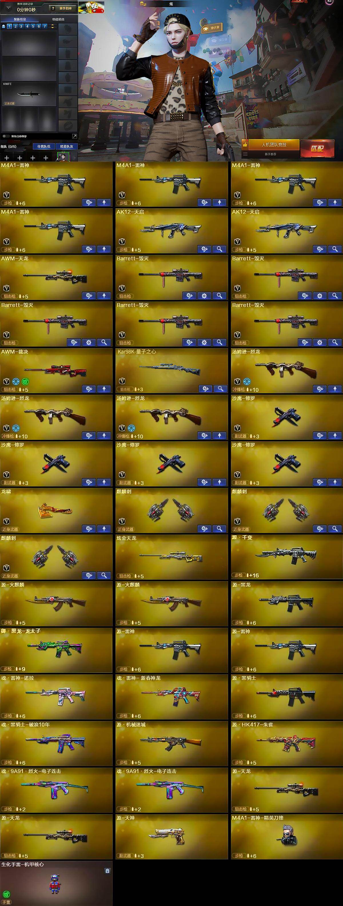 【英雄级武器】:M4A1-雷神*4,AK12-天启*2,AWM-天龙,Barrett-毁灭*5,AWM-裁决,Kar98K-量子之心,汤姆逊-烈龙*3,沙鹰-修罗*4,龙啸,麒麟刺*3