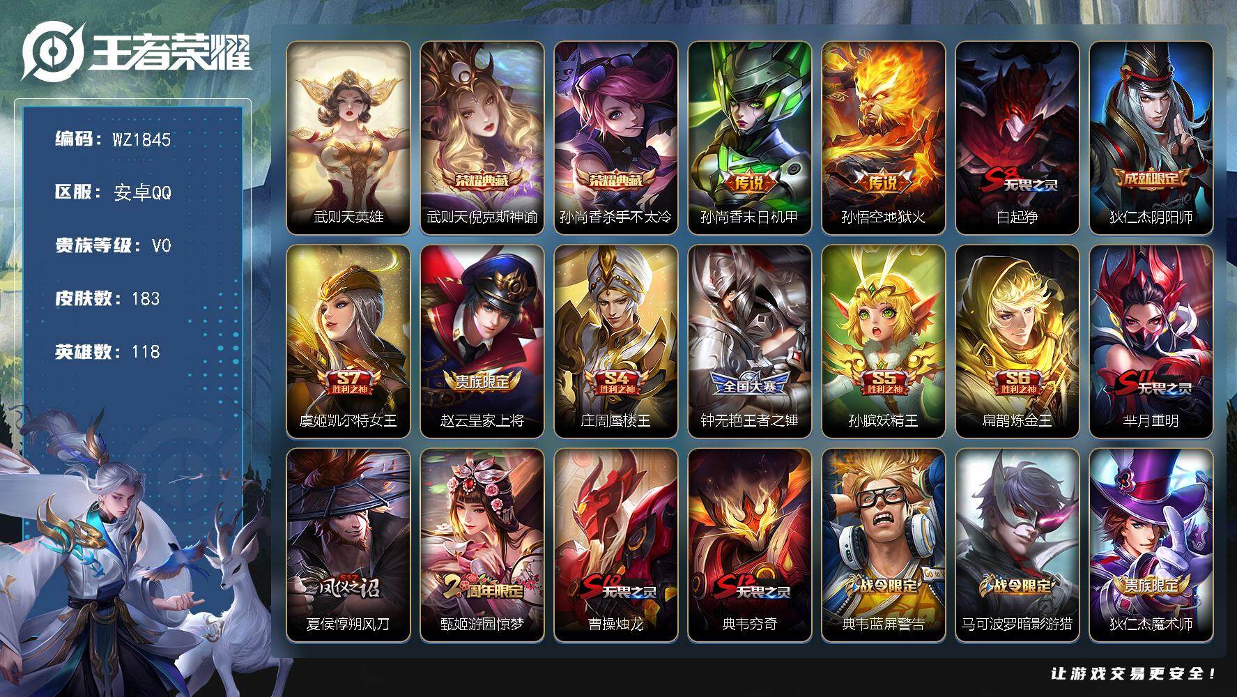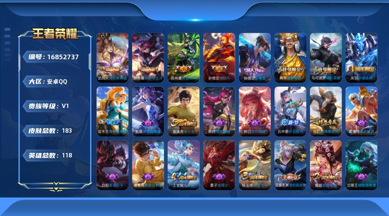 [16852737]安卓Q-183皮肤-2典藏皮肤-1典藏英雄-2传说-39史诗