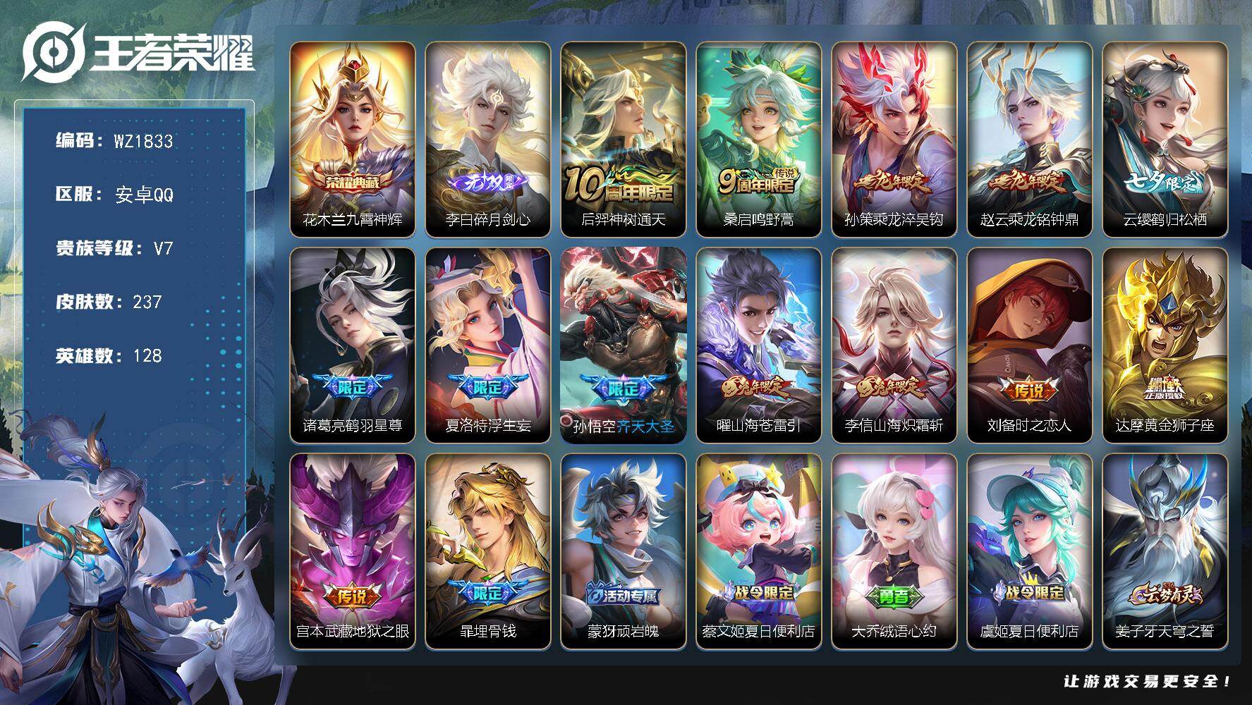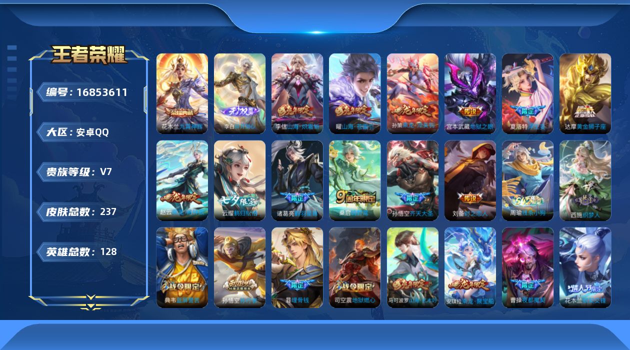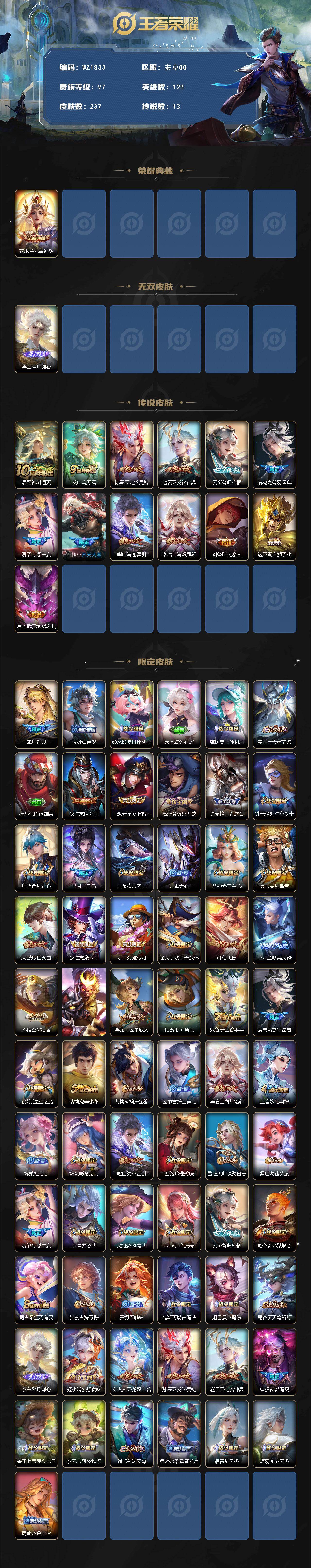 [16853611]安卓Q-237皮肤-1典藏皮肤-1无双-13传说-76史诗