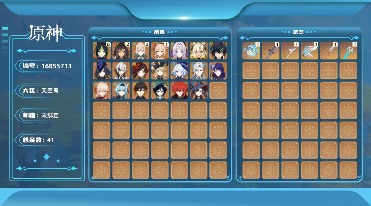 [16855713]59级/41黄/女主/23个五星角色/7个五星武器